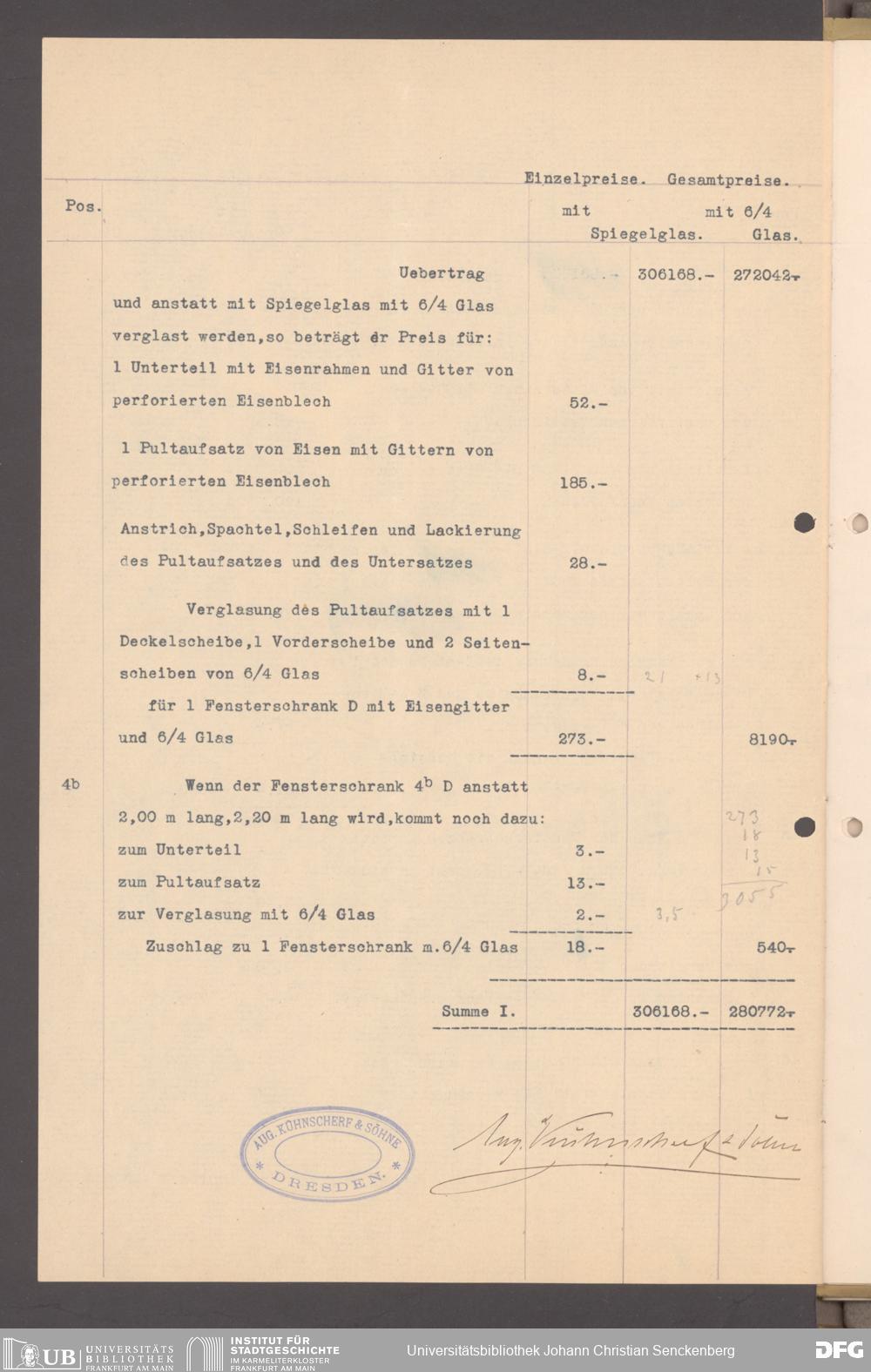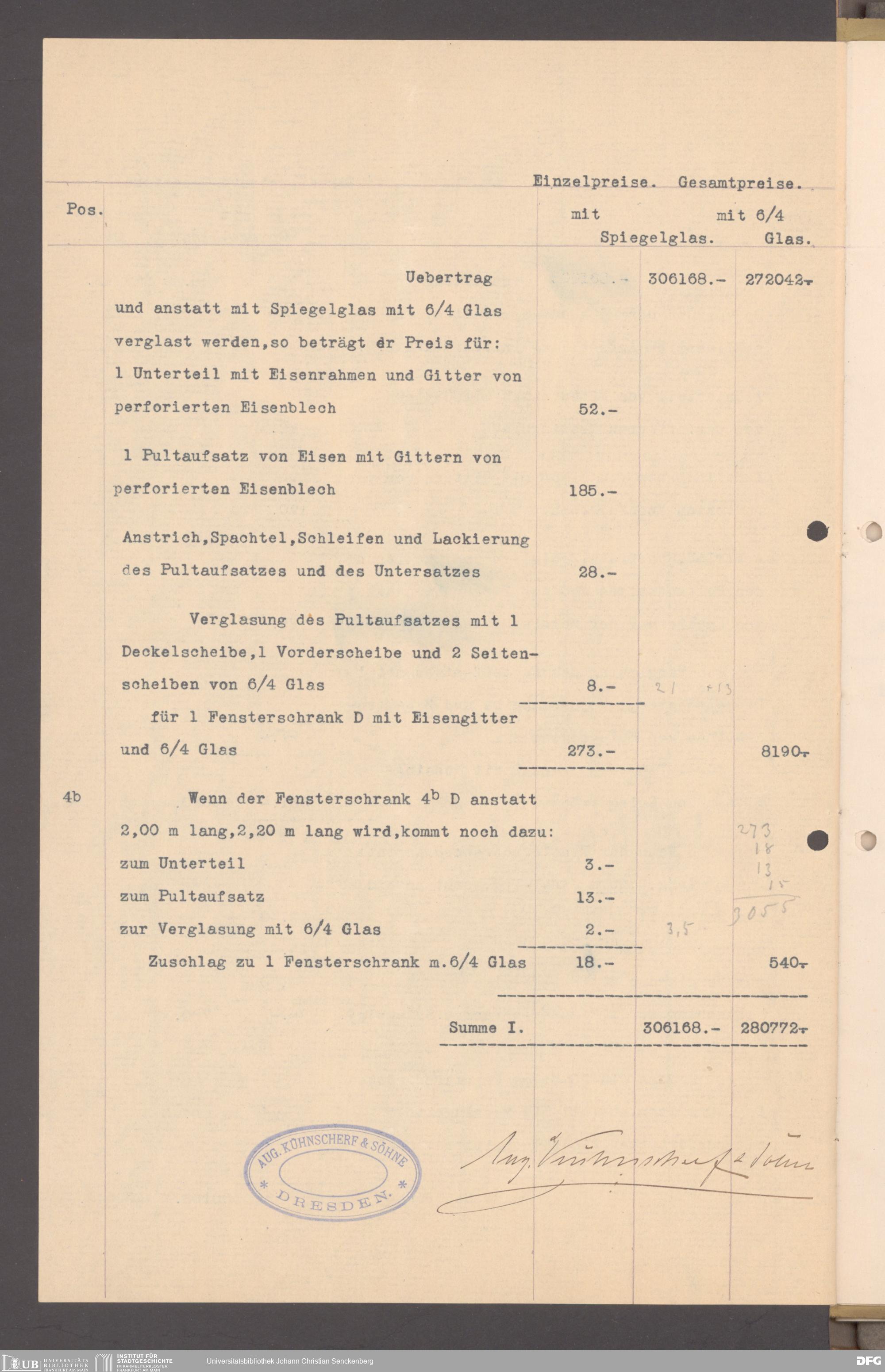 V176 Senckenberg Gesellschaft für Naturforschung, 152 - Ankauf von Museumsschränken bei der Firma August Kühnscherf und Söhne, Bd. 1