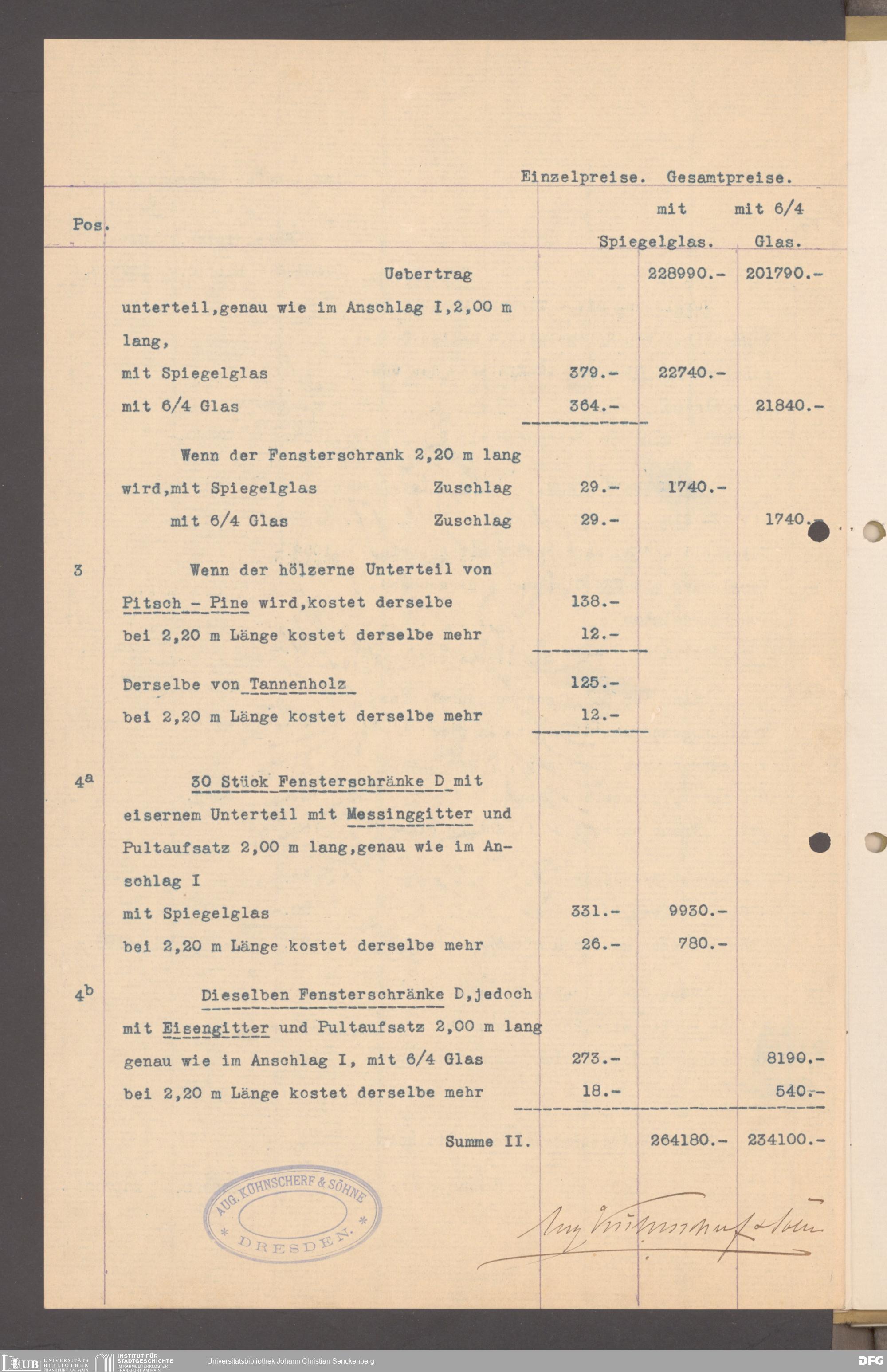 V176 Senckenberg Gesellschaft für Naturforschung, 152 - Ankauf von Museumsschränken bei der Firma August Kühnscherf und Söhne, Bd. 1
