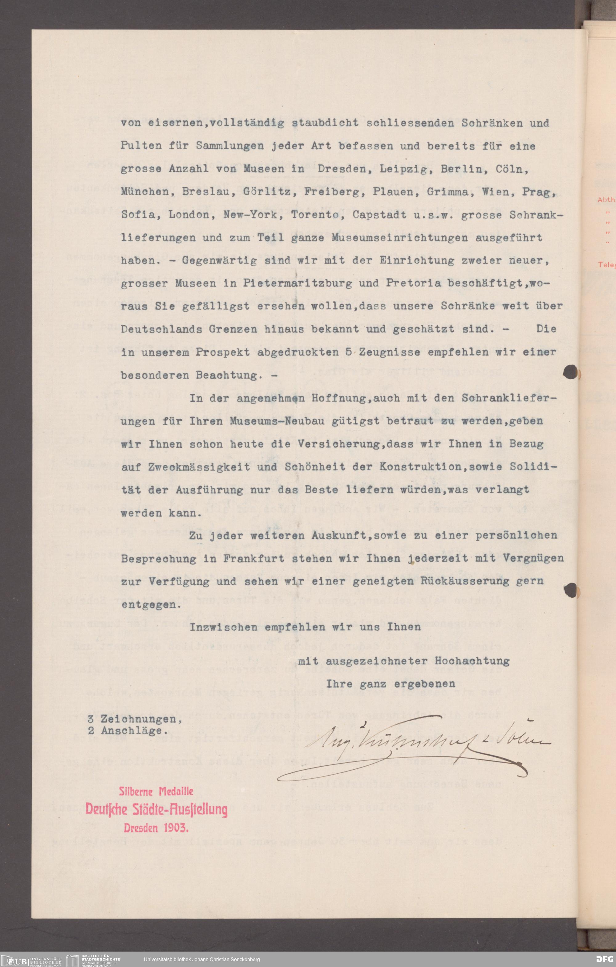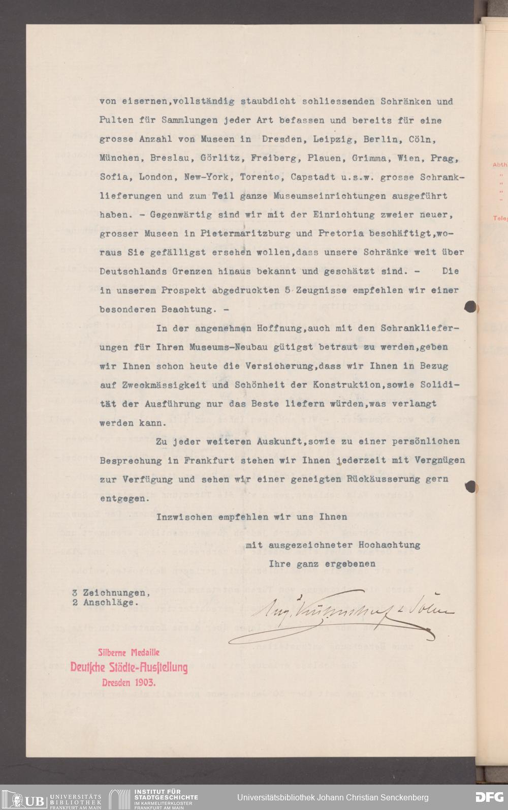 V176 Senckenberg Gesellschaft für Naturforschung, 152 - Ankauf von Museumsschränken bei der Firma August Kühnscherf und Söhne, Bd. 1