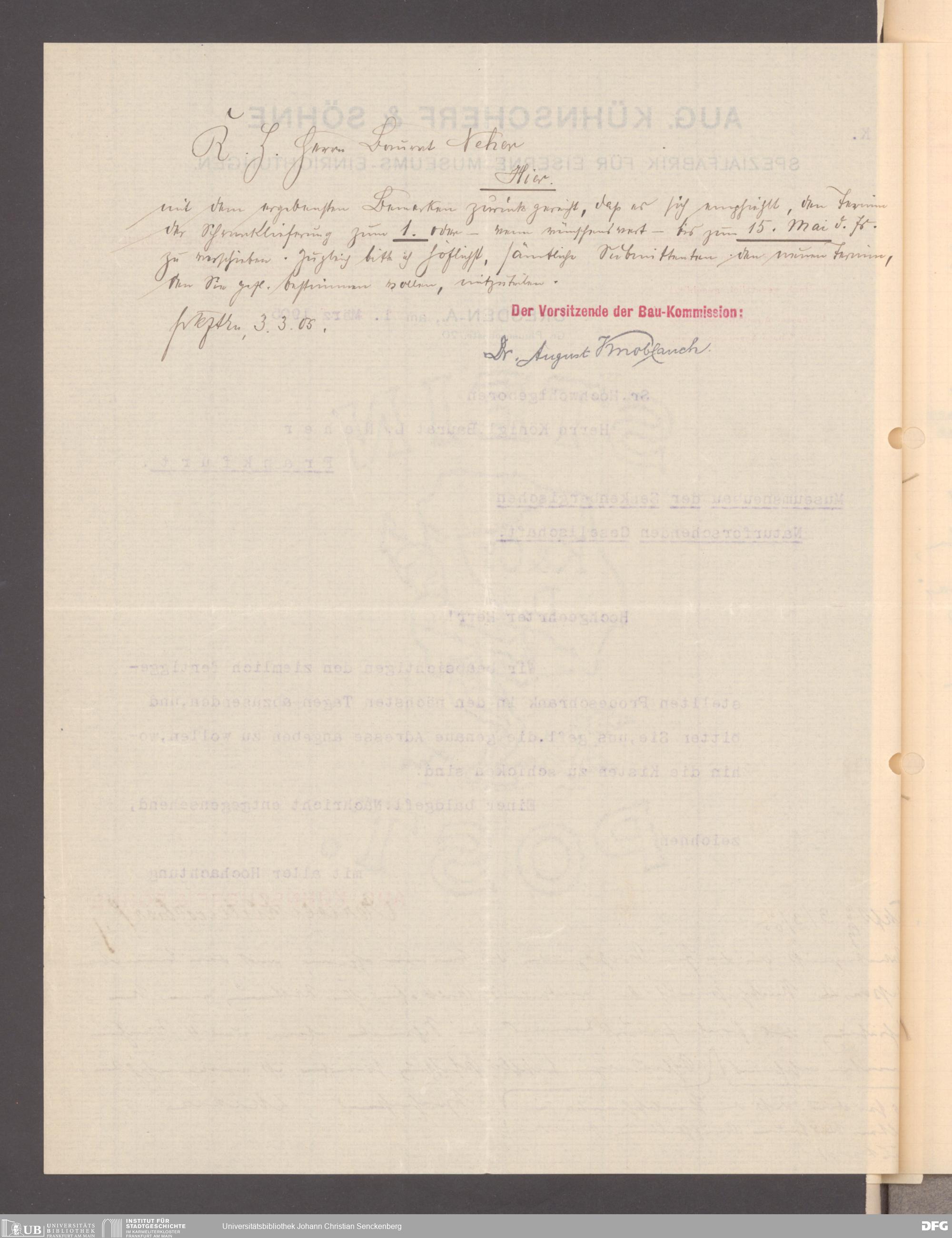 V176 Senckenberg Gesellschaft für Naturforschung, 152 - Ankauf von Museumsschränken bei der Firma August Kühnscherf und Söhne, Bd. 1