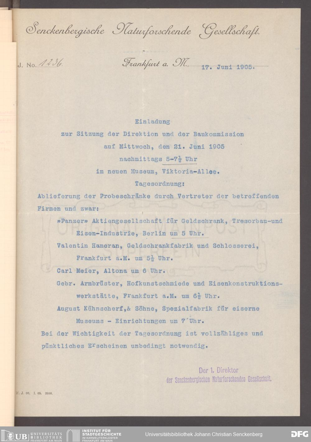 V176 Senckenberg Gesellschaft für Naturforschung, 152 - Ankauf von Museumsschränken bei der Firma August Kühnscherf und Söhne, Bd. 1