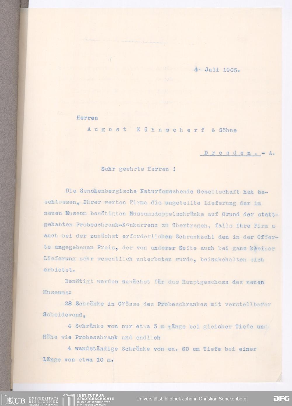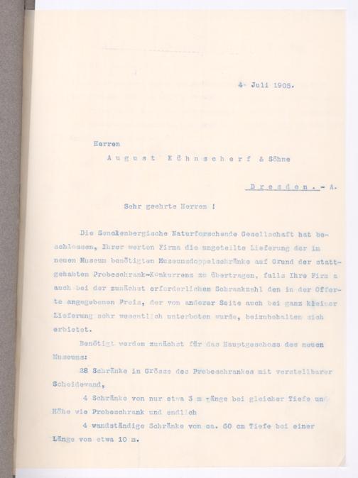 V176 Senckenberg Gesellschaft für Naturforschung, 152 - Ankauf von Museumsschränken bei der Firma August Kühnscherf und Söhne, Bd. 1