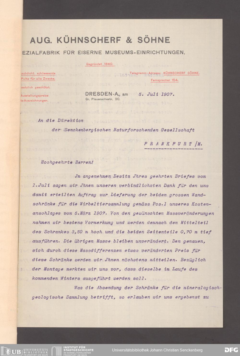 V176 Senckenberg Gesellschaft für Naturforschung, 153 - Ankauf von Museumsschränken bei der Firma August Kühnscherf und Söhne, Bd. 2