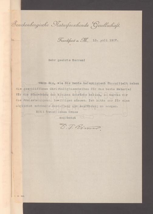 V176 Senckenberg Gesellschaft für Naturforschung, 153 - Ankauf von Museumsschränken bei der Firma August Kühnscherf und Söhne, Bd. 2