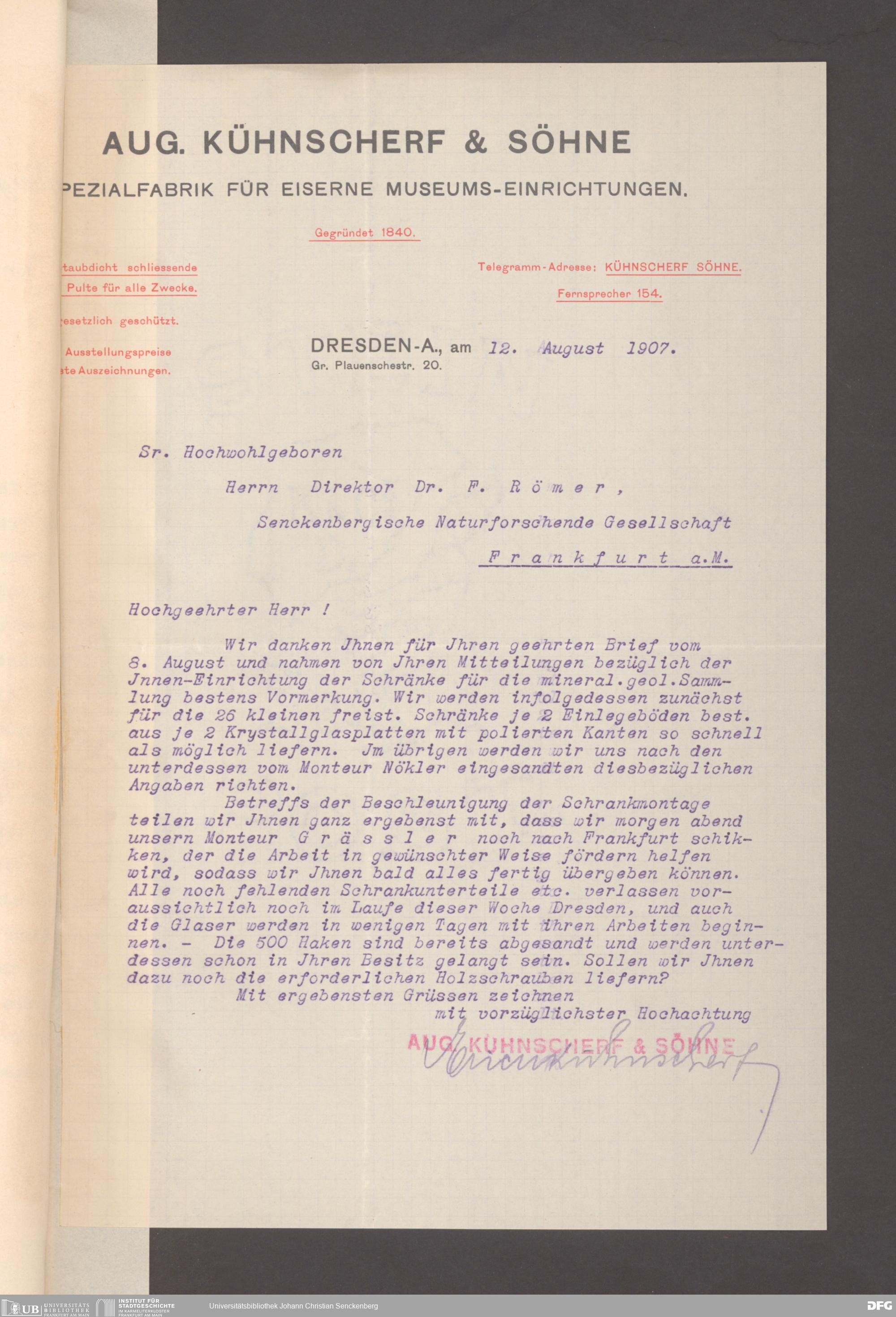 V176 Senckenberg Gesellschaft für Naturforschung, 153 - Ankauf von Museumsschränken bei der Firma August Kühnscherf und Söhne, Bd. 2