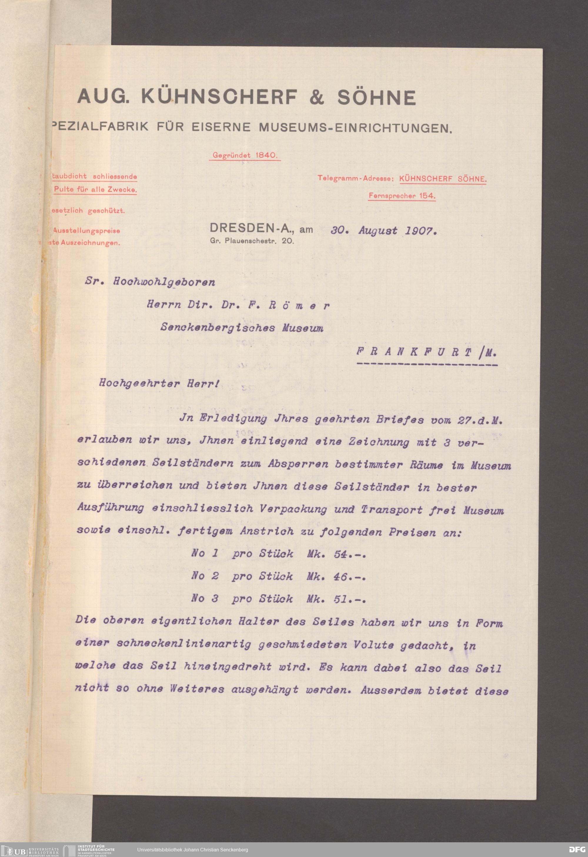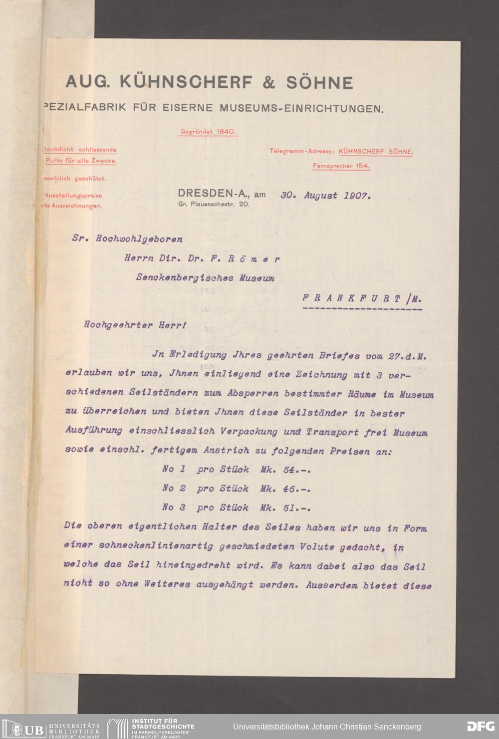 V176 Senckenberg Gesellschaft für Naturforschung, 153 - Ankauf von Museumsschränken bei der Firma August Kühnscherf und Söhne, Bd. 2