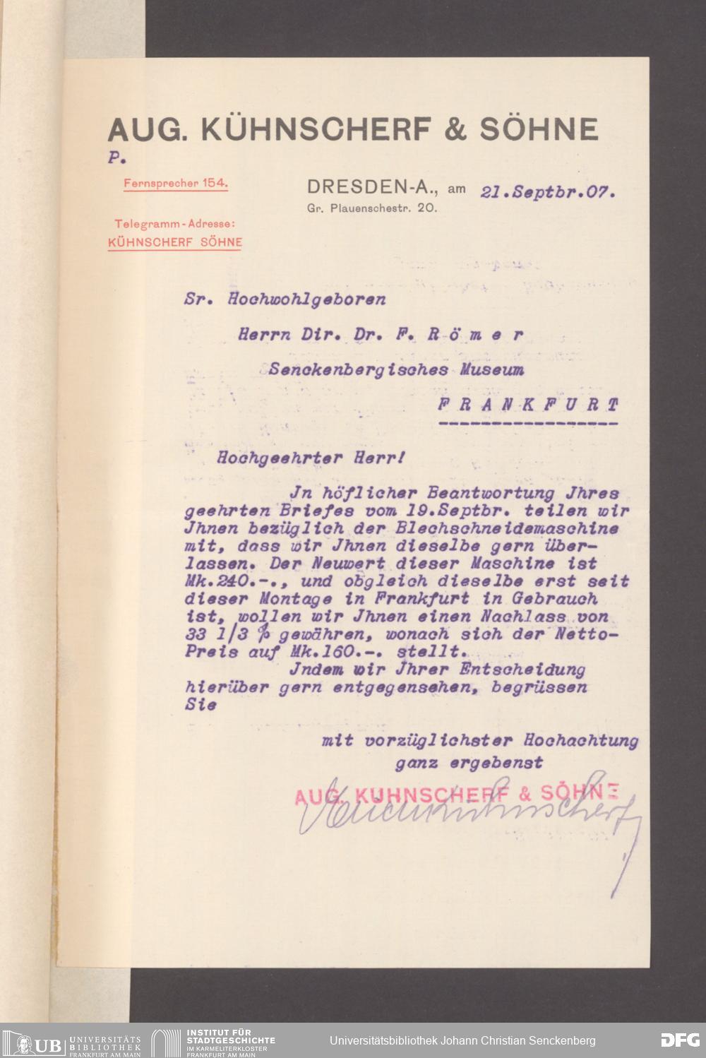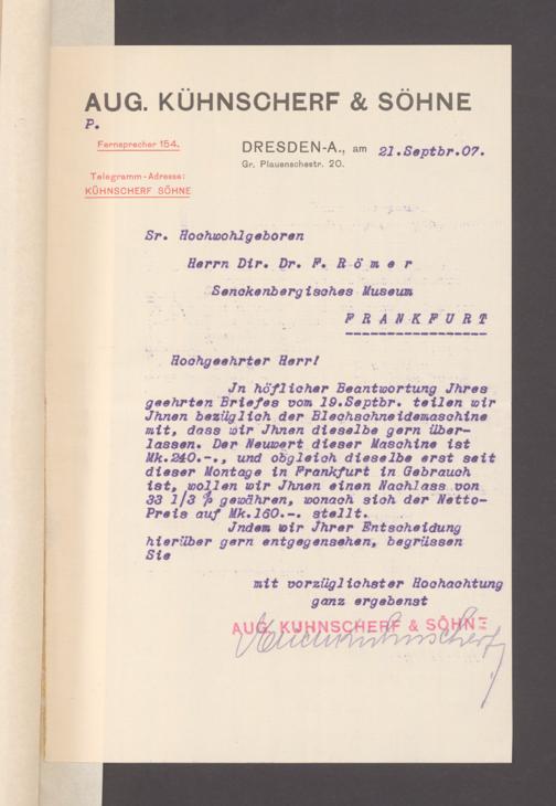 V176 Senckenberg Gesellschaft für Naturforschung, 153 - Ankauf von Museumsschränken bei der Firma August Kühnscherf und Söhne, Bd. 2