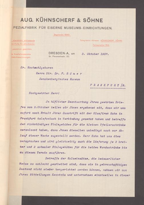 V176 Senckenberg Gesellschaft für Naturforschung, 153 - Ankauf von Museumsschränken bei der Firma August Kühnscherf und Söhne, Bd. 2