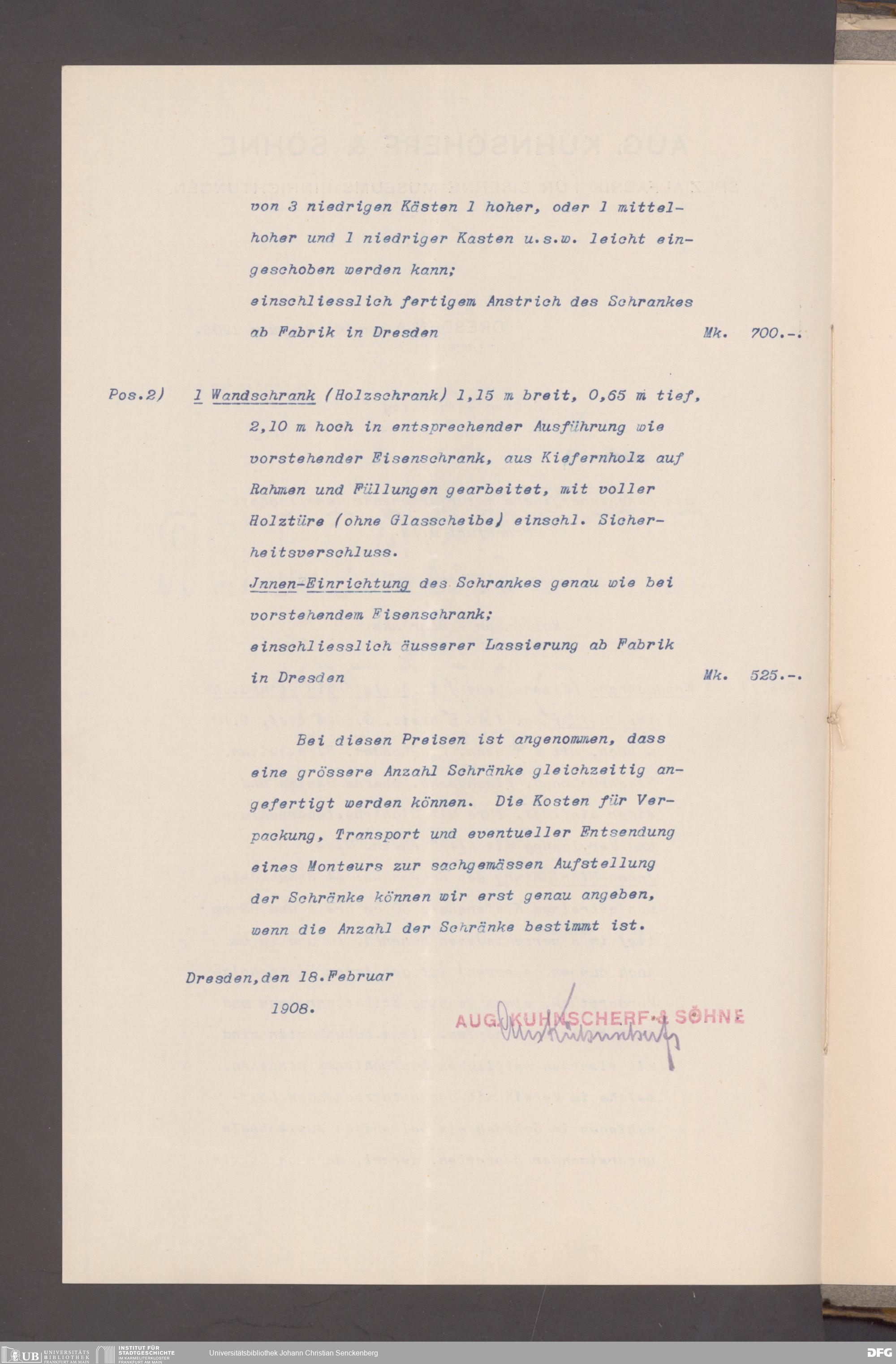 V176 Senckenberg Gesellschaft für Naturforschung, 153 - Ankauf von Museumsschränken bei der Firma August Kühnscherf und Söhne, Bd. 2