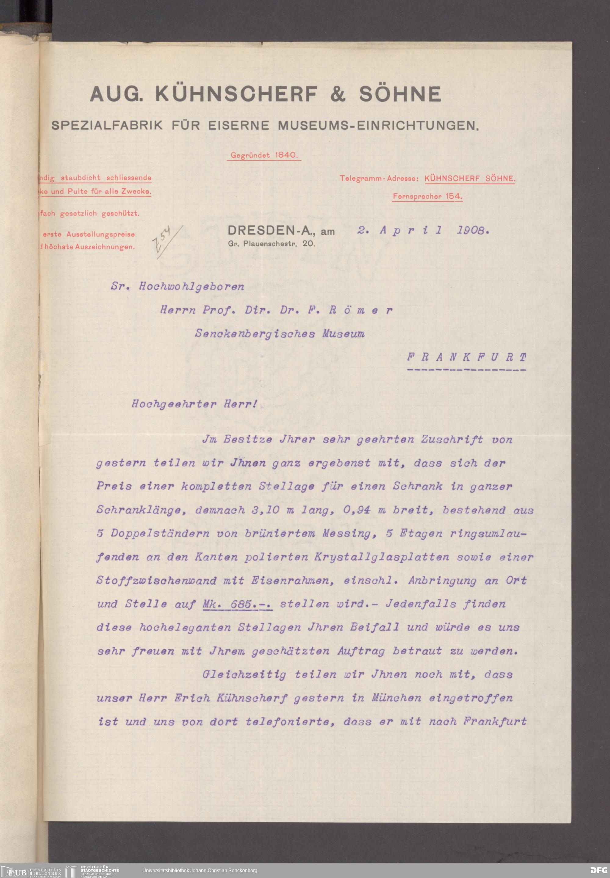 V176 Senckenberg Gesellschaft für Naturforschung, 153 - Ankauf von Museumsschränken bei der Firma August Kühnscherf und Söhne, Bd. 2