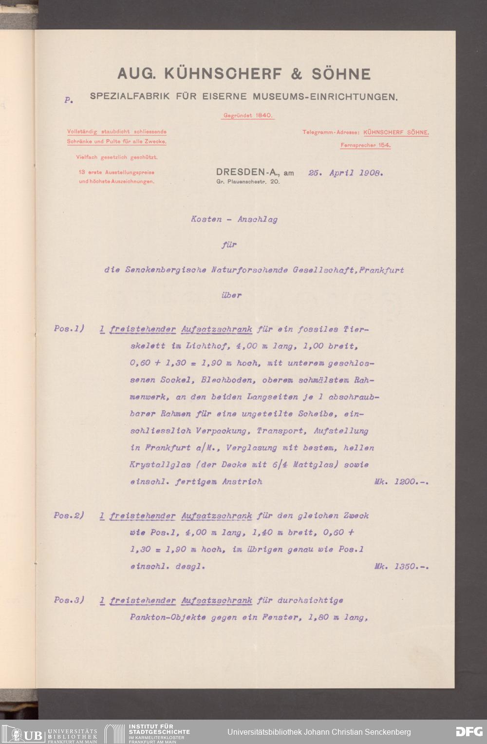 V176 Senckenberg Gesellschaft für Naturforschung, 153 - Ankauf von Museumsschränken bei der Firma August Kühnscherf und Söhne, Bd. 2