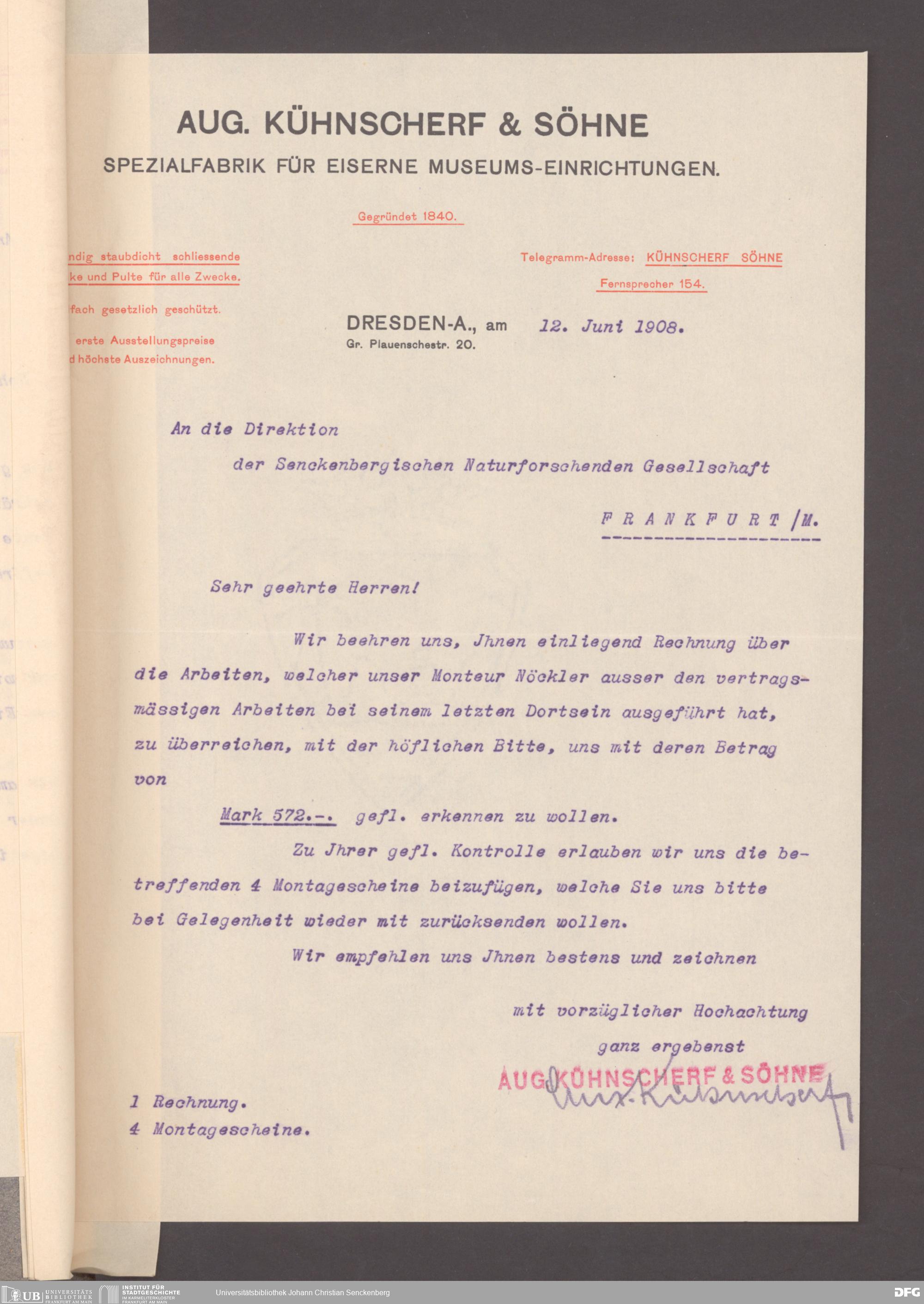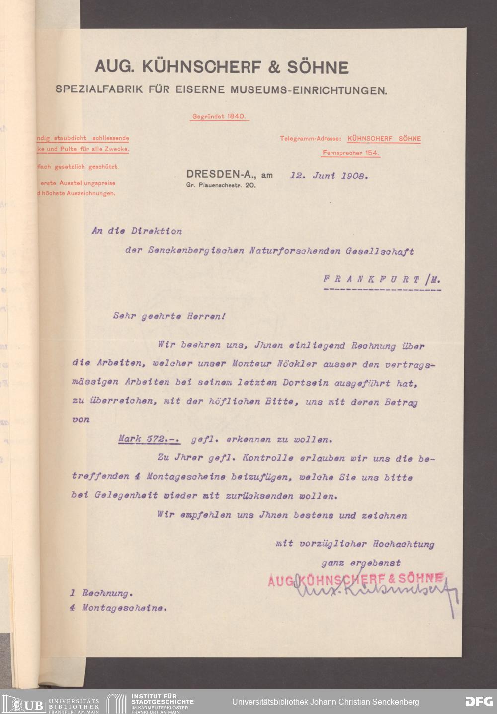 V176 Senckenberg Gesellschaft für Naturforschung, 153 - Ankauf von Museumsschränken bei der Firma August Kühnscherf und Söhne, Bd. 2