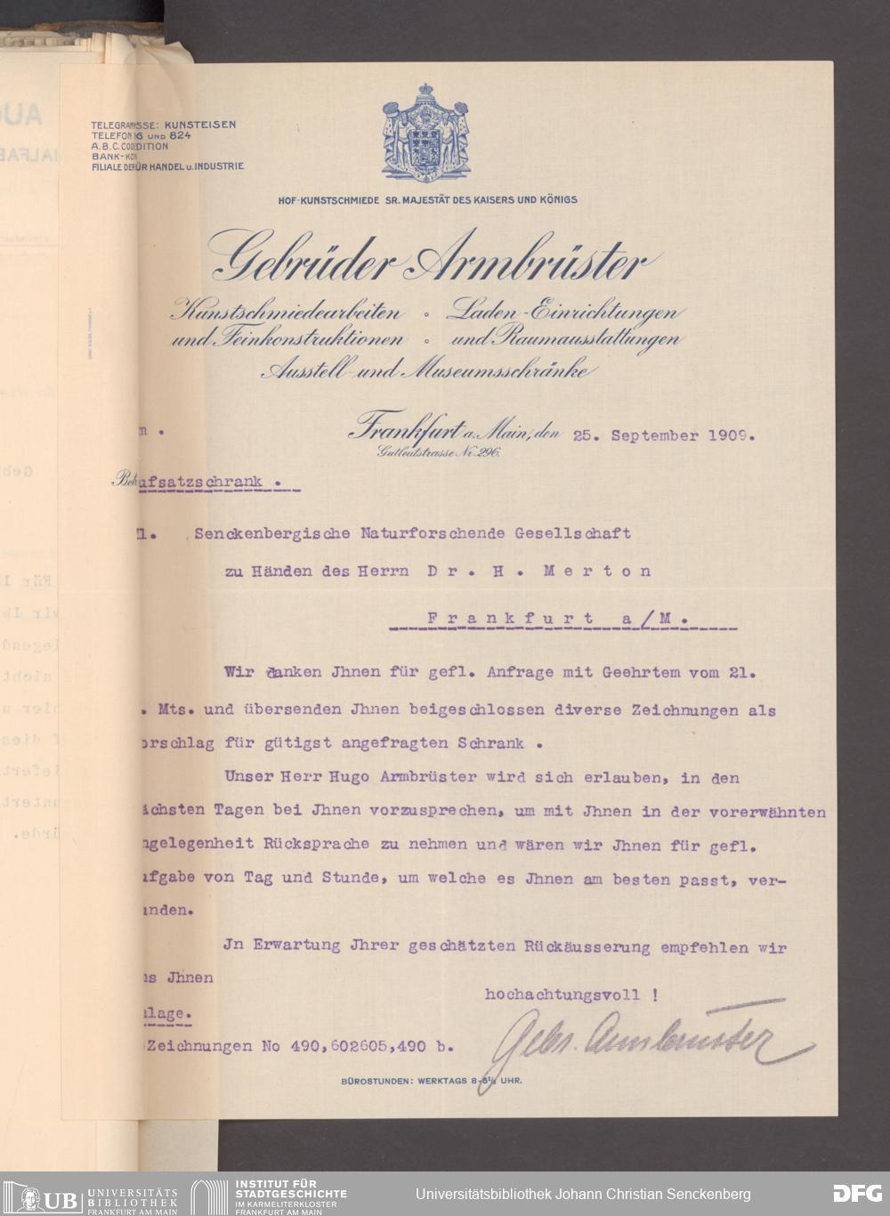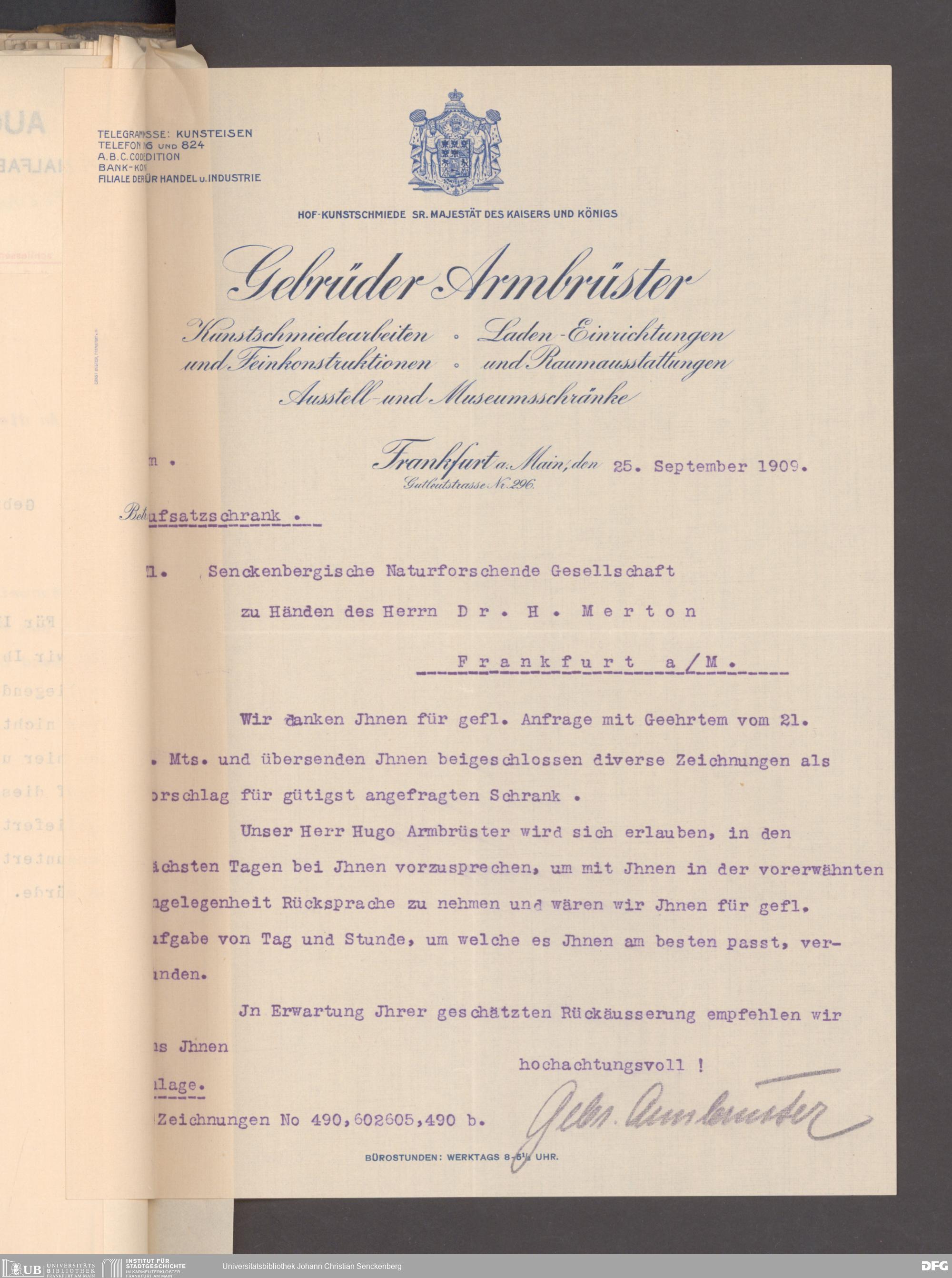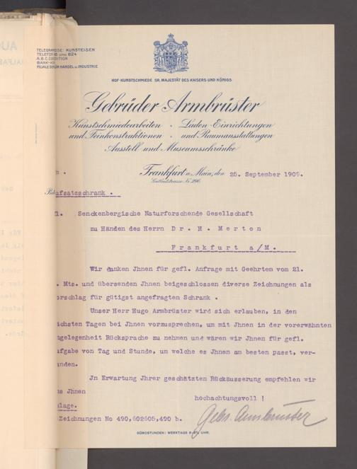 V176 Senckenberg Gesellschaft für Naturforschung, 153 - Ankauf von Museumsschränken bei der Firma August Kühnscherf und Söhne, Bd. 2