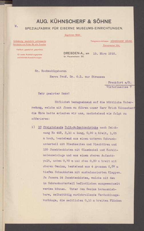 V176 Senckenberg Gesellschaft für Naturforschung, 154 - Ankauf von Museumsschränken bei der Firma August Kühnscherf und Söhne, Bd. 3