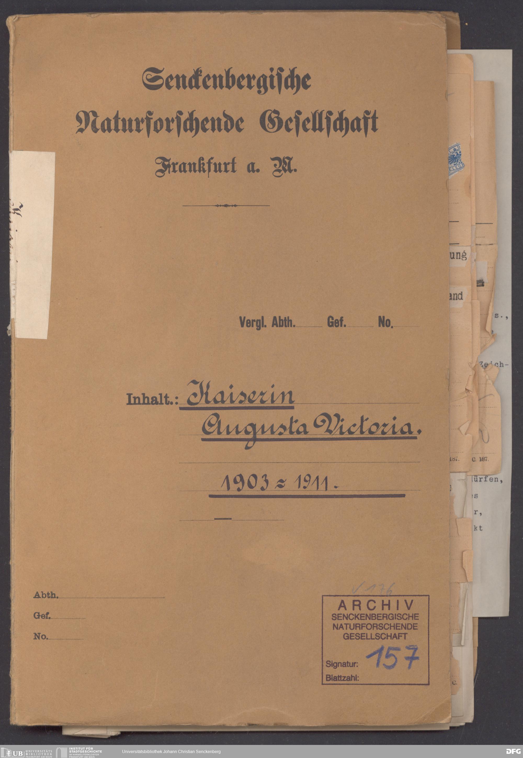 V176 Senckenberg Gesellschaft für Naturforschung, 157 - Korrespondenz mit dem Kabinett der Schirmherrin Kaiserin Auguste Viktoria, Bd. 1