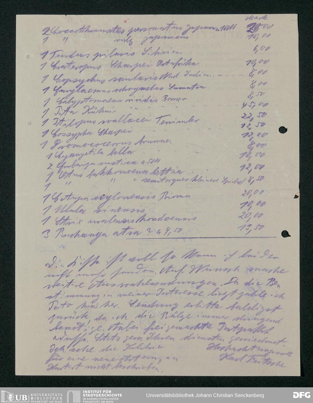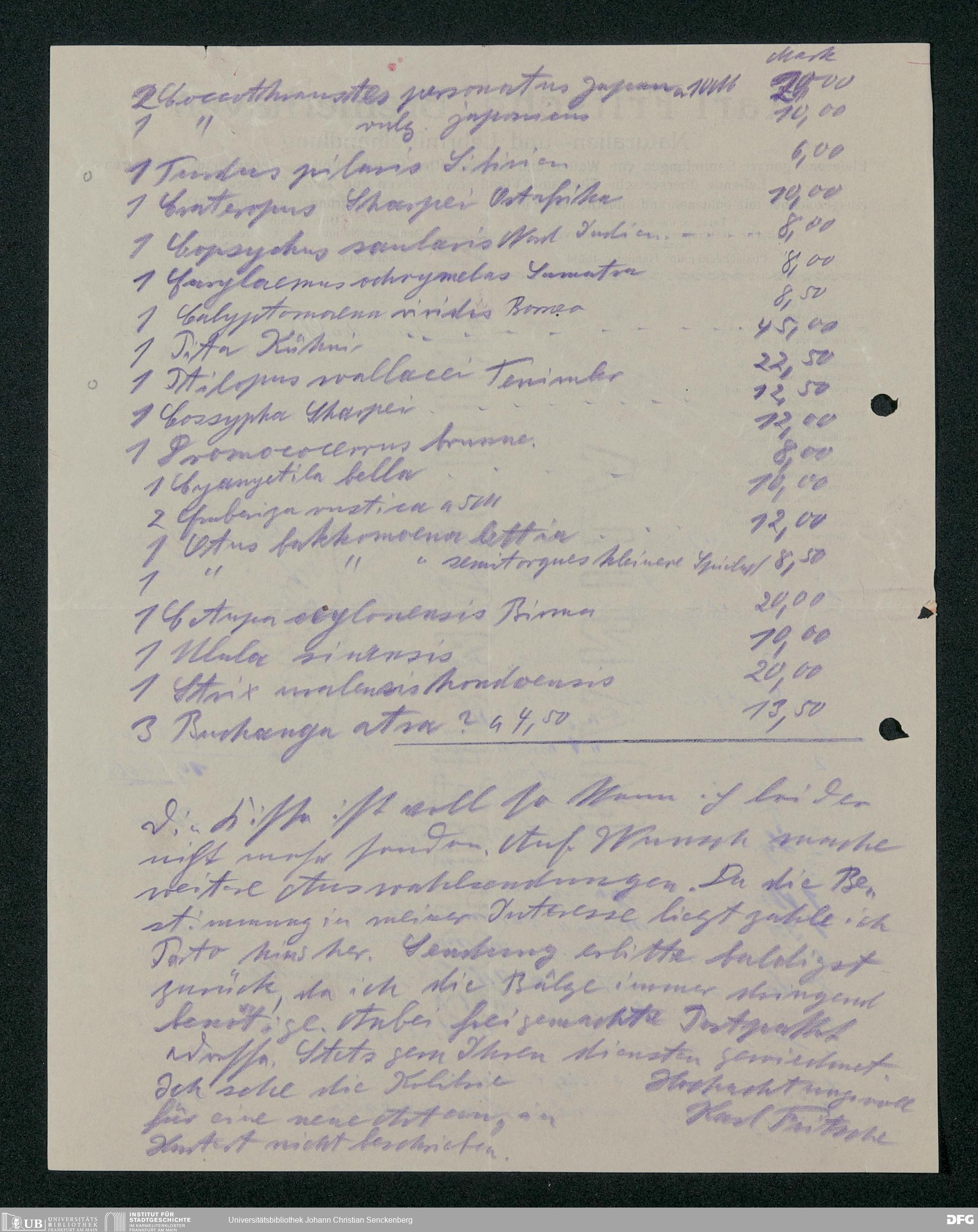 V176 Senckenberg Gesellschaft für Naturforschung, 158 - Geschäftsbeziehung mit der Naturalien- und Lehrmittelhandlung Karl Fritsche