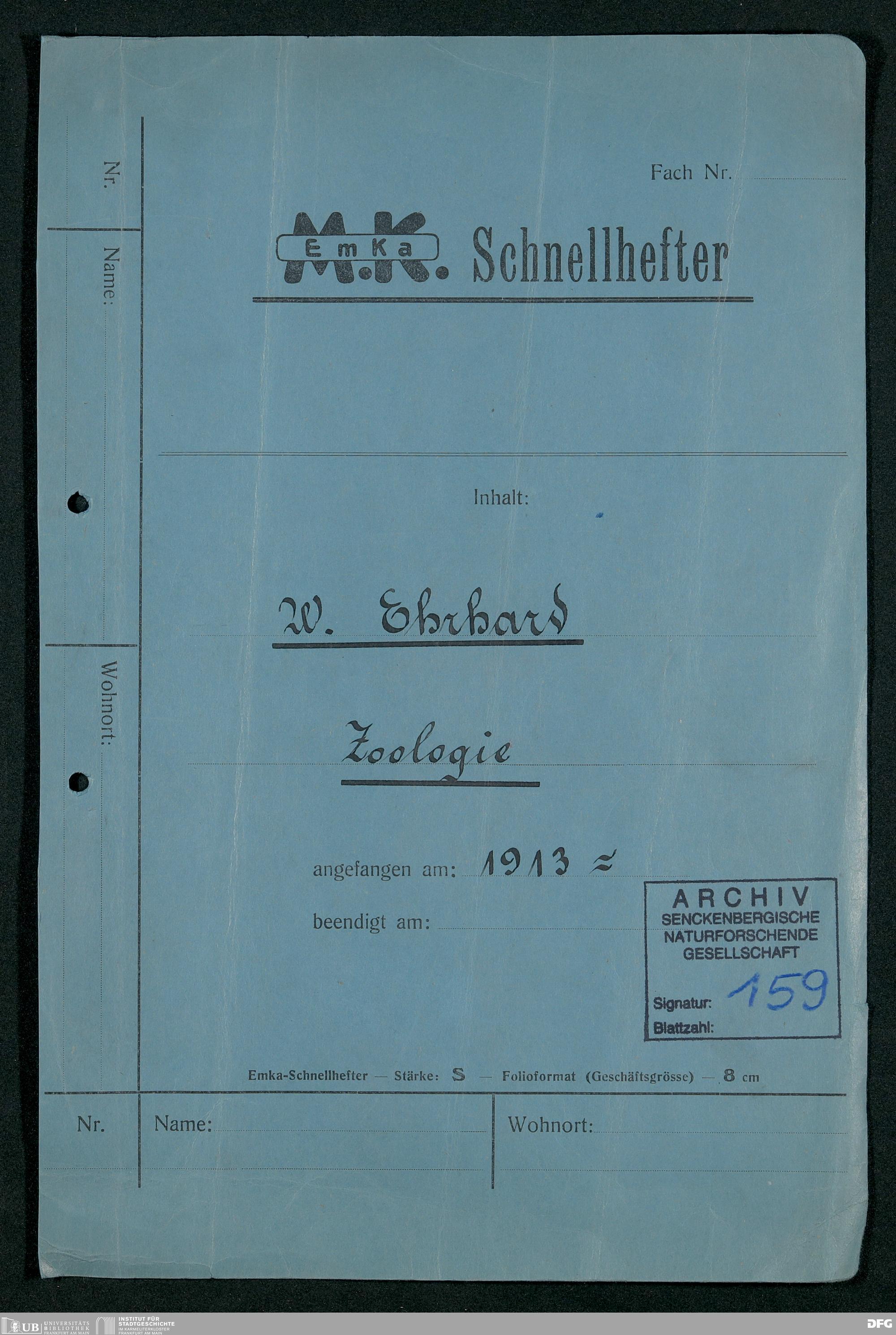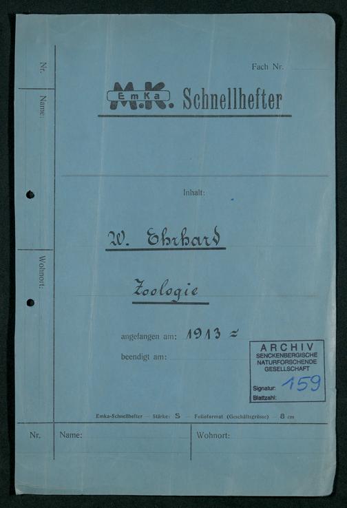 V176 Senckenberg Gesellschaft für Naturforschung, 159 - Geschäftsbeziehung mit dem Naturalienhändler Wilhelm Ehrhard