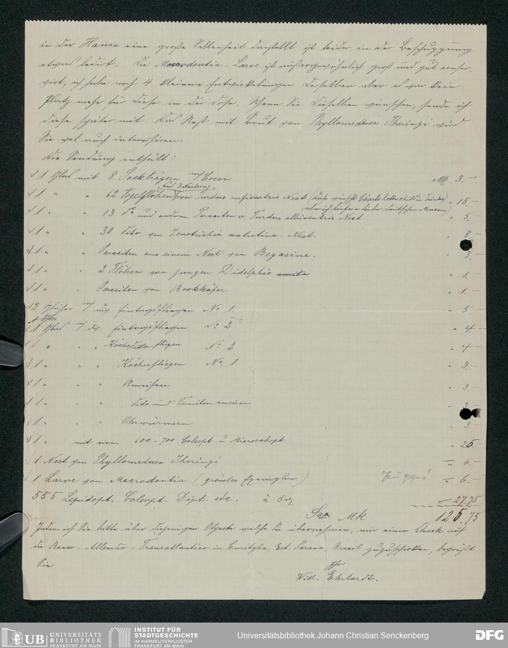 V176 Senckenberg Gesellschaft für Naturforschung, 159 - Geschäftsbeziehung mit dem Naturalienhändler Wilhelm Ehrhard