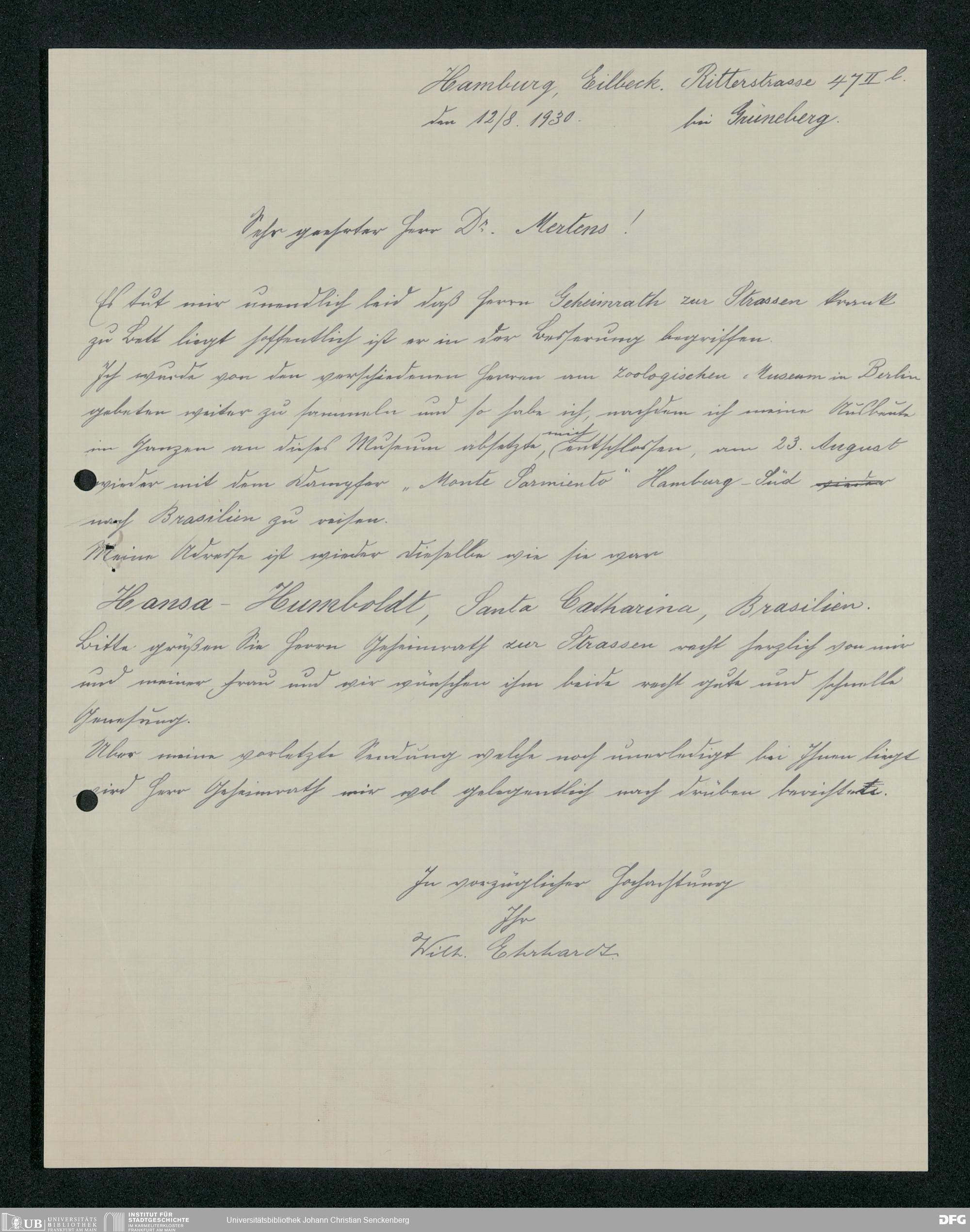 V176 Senckenberg Gesellschaft für Naturforschung, 159 - Geschäftsbeziehung mit dem Naturalienhändler Wilhelm Ehrhard