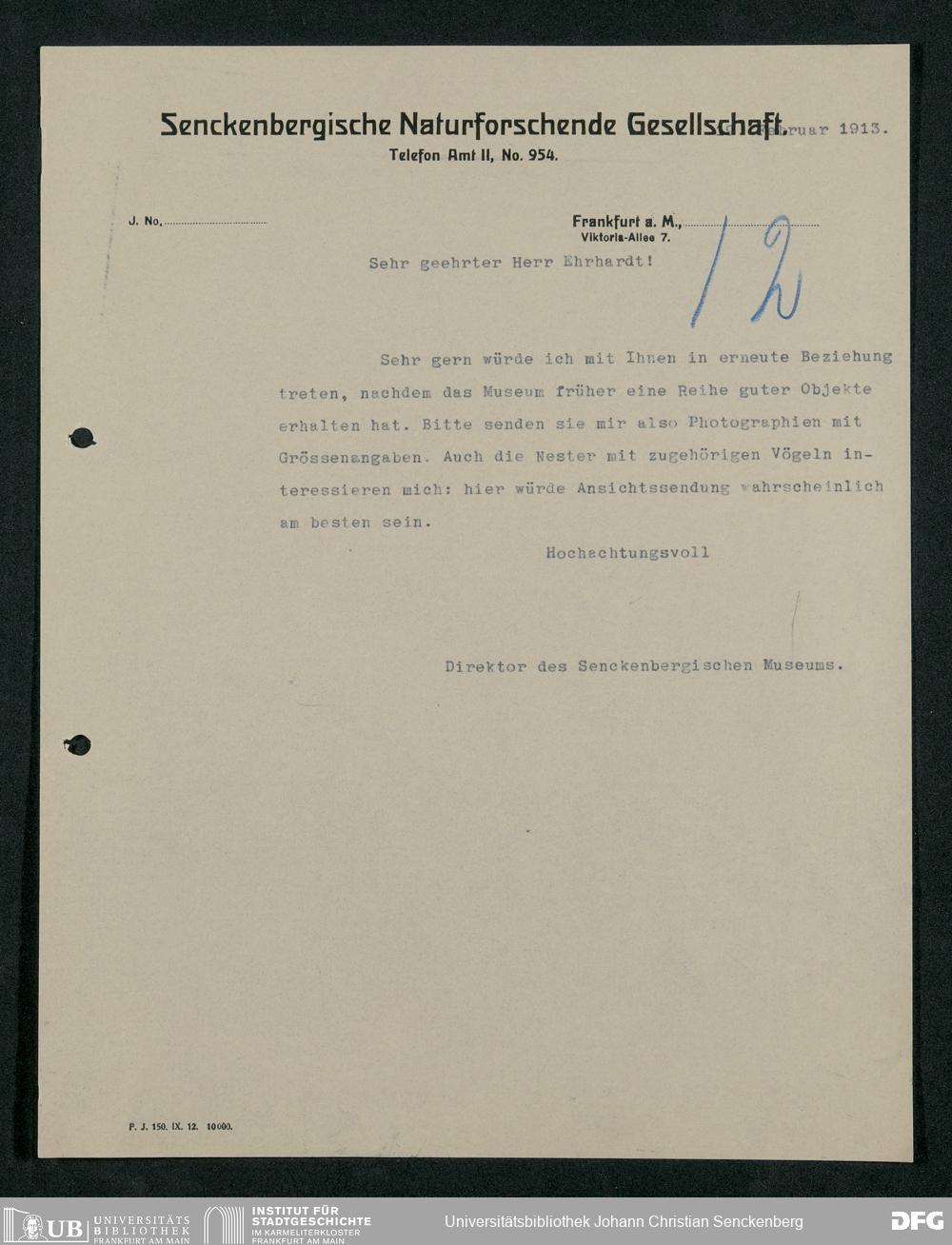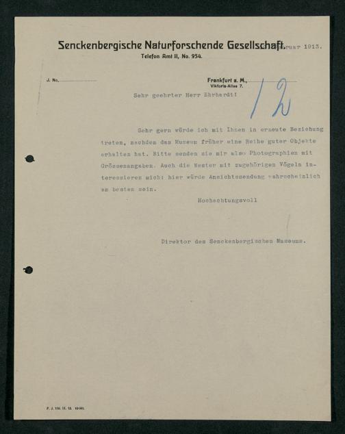 V176 Senckenberg Gesellschaft für Naturforschung, 159 - Geschäftsbeziehung mit dem Naturalienhändler Wilhelm Ehrhard