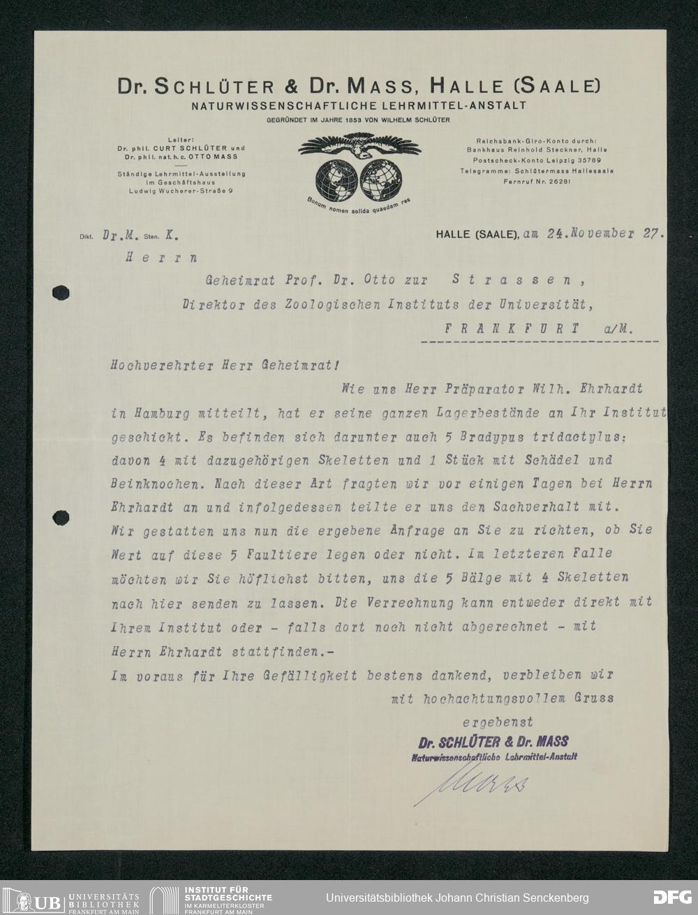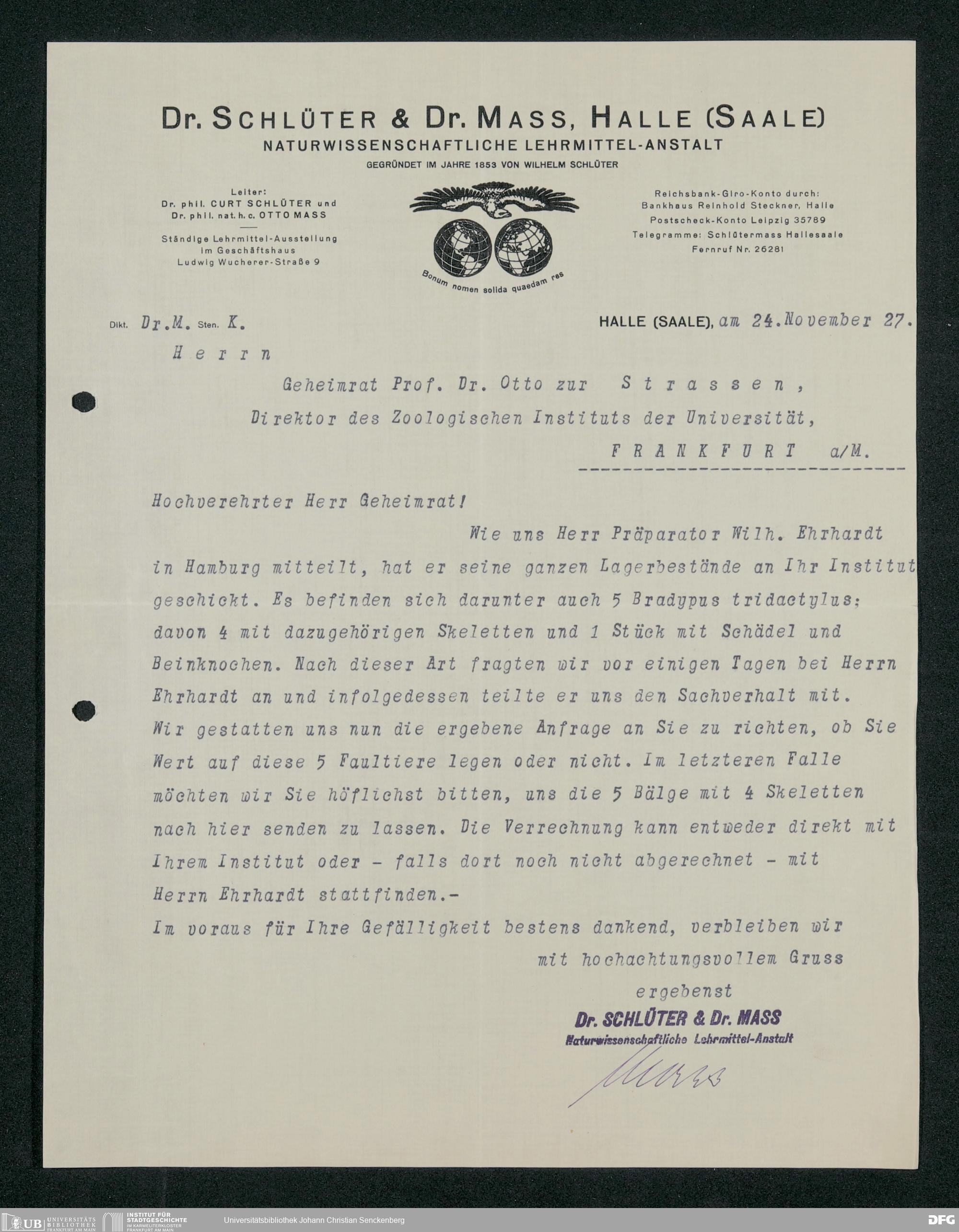 V176 Senckenberg Gesellschaft für Naturforschung, 160 - Geschäftsbeziehung mit der Naturwissenschaftlichen Lehrmittel-Anstalt Dr. Schlüter und Dr. Maß