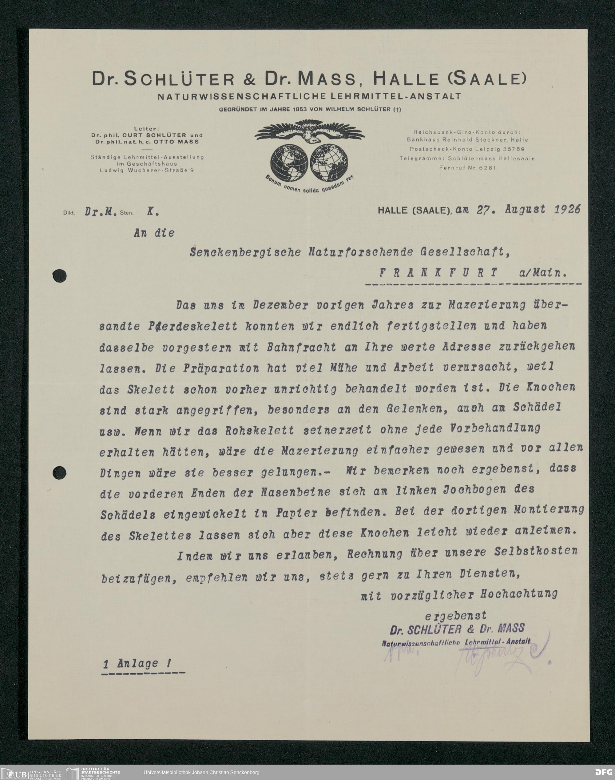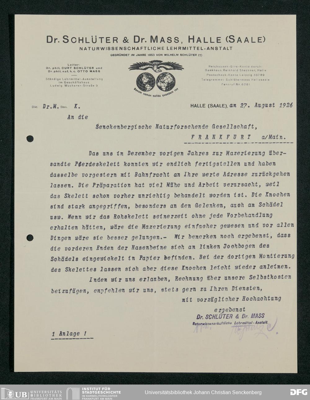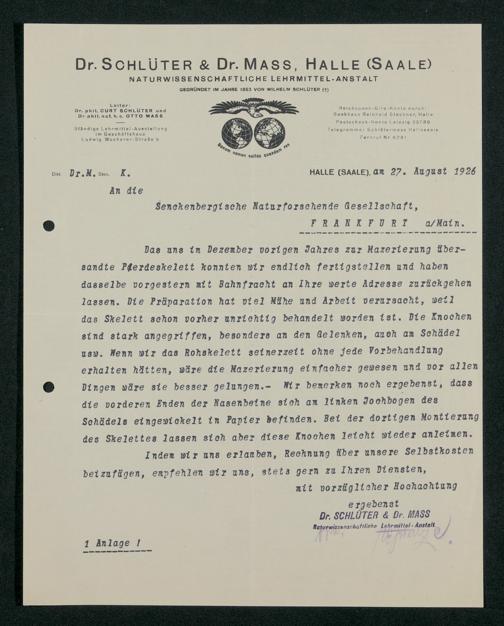 V176 Senckenberg Gesellschaft für Naturforschung, 160 - Geschäftsbeziehung mit der Naturwissenschaftlichen Lehrmittel-Anstalt Dr. Schlüter und Dr. Maß