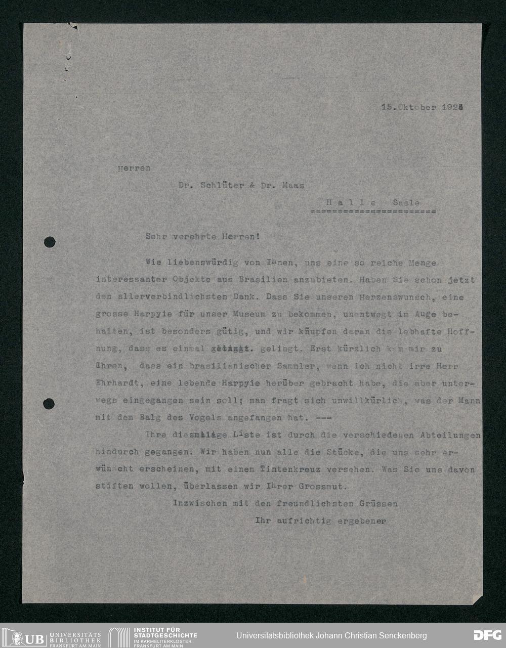 V176 Senckenberg Gesellschaft für Naturforschung, 160 - Geschäftsbeziehung mit der Naturwissenschaftlichen Lehrmittel-Anstalt Dr. Schlüter und Dr. Maß