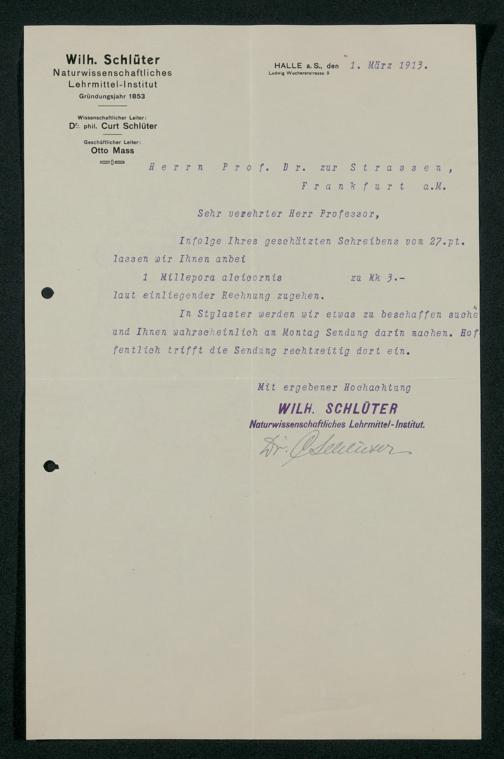 V176 Senckenberg Gesellschaft für Naturforschung, 160 - Geschäftsbeziehung mit der Naturwissenschaftlichen Lehrmittel-Anstalt Dr. Schlüter und Dr. Maß
