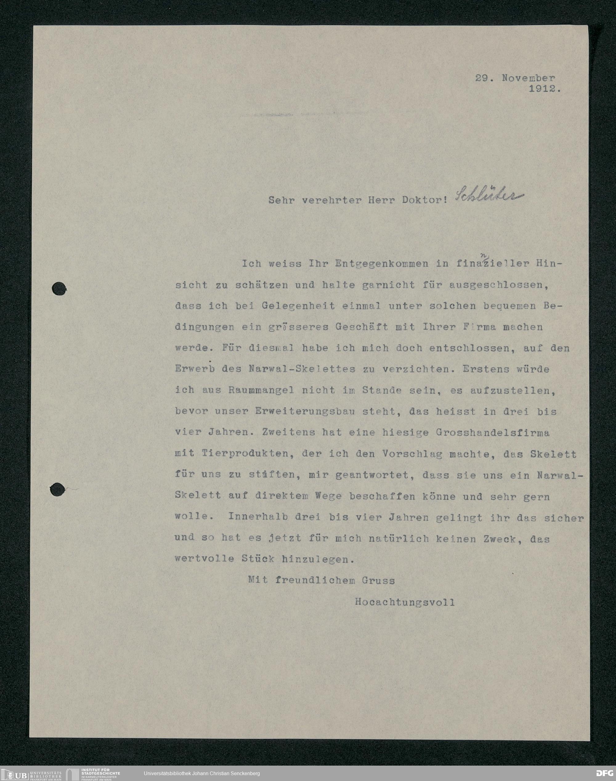 V176 Senckenberg Gesellschaft für Naturforschung, 160 - Geschäftsbeziehung mit der Naturwissenschaftlichen Lehrmittel-Anstalt Dr. Schlüter und Dr. Maß
