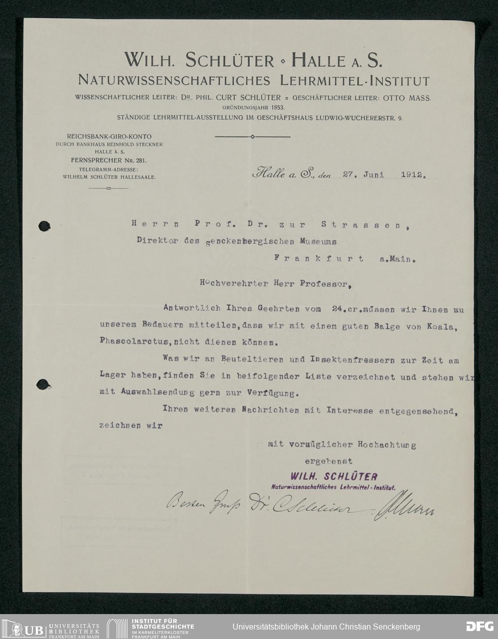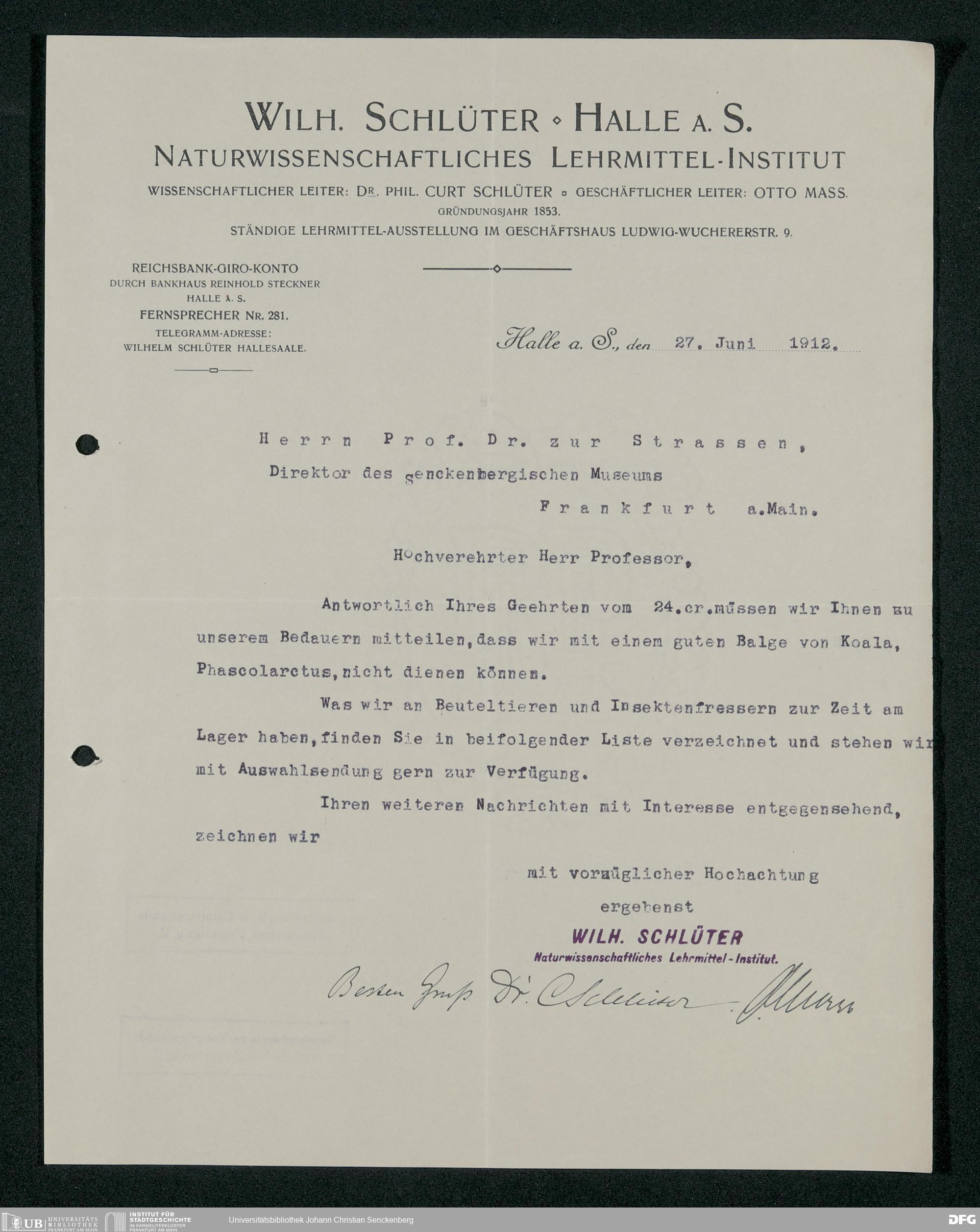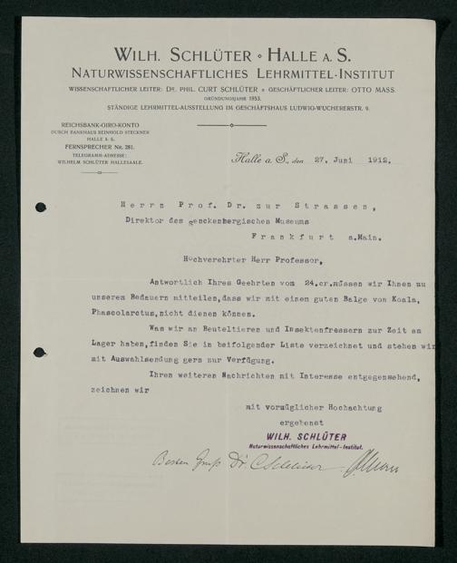V176 Senckenberg Gesellschaft für Naturforschung, 160 - Geschäftsbeziehung mit der Naturwissenschaftlichen Lehrmittel-Anstalt Dr. Schlüter und Dr. Maß