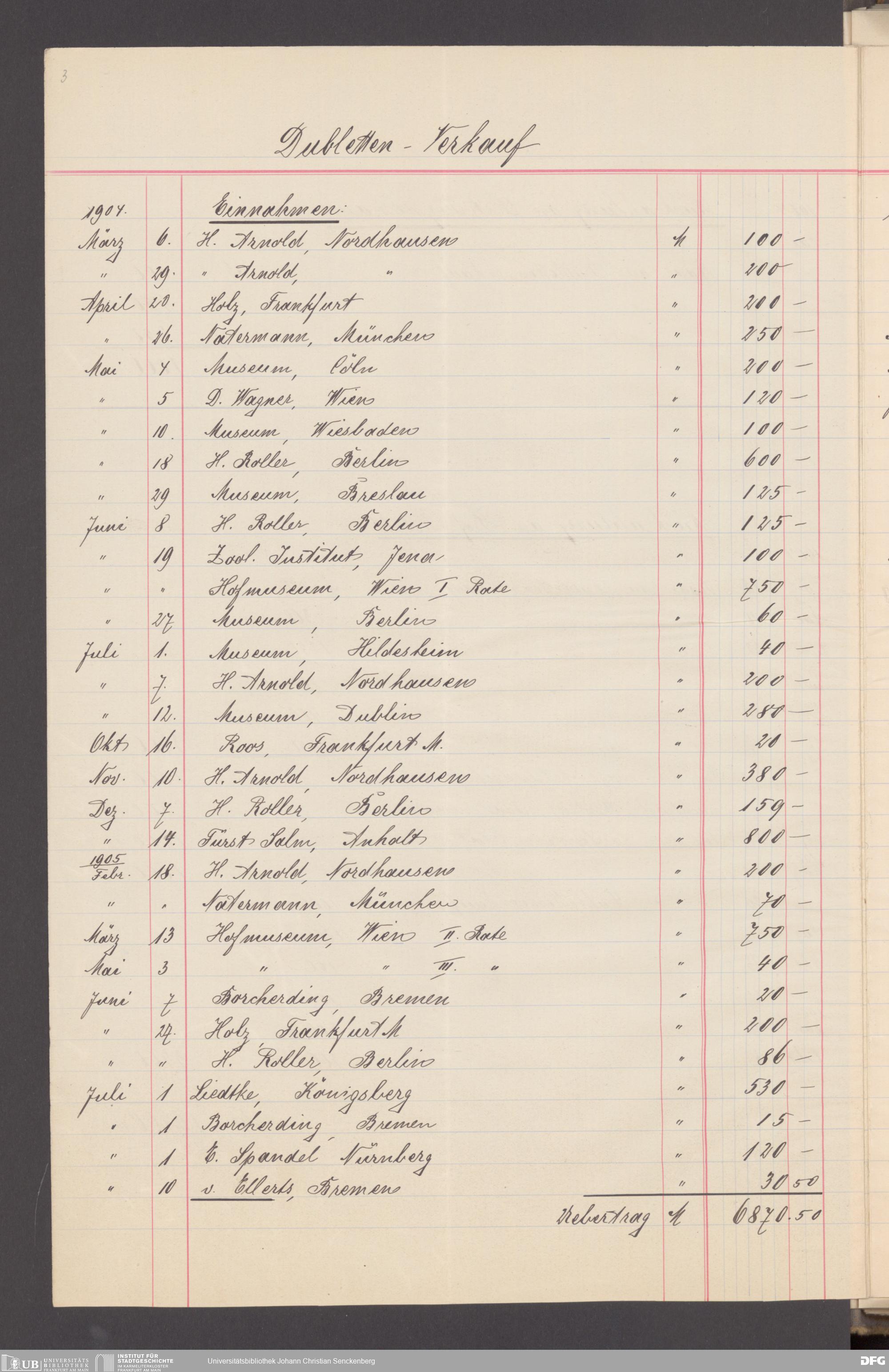 V176 Senckenberg Gesellschaft für Naturforschung, 162 - Ankauf und Tausch zoologischer Exponate, Bd. 1