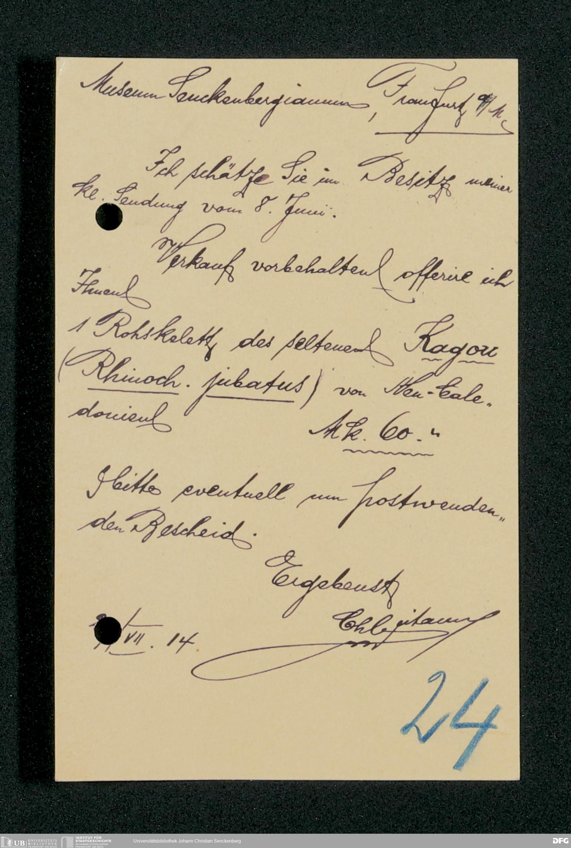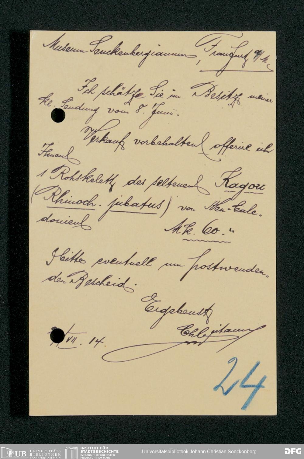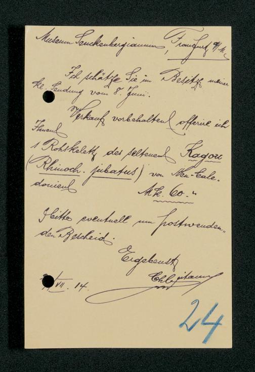 V176 Senckenberg Gesellschaft für Naturforschung, 163 - Ankauf und Tausch zoologischer Exponate, Bd. 4