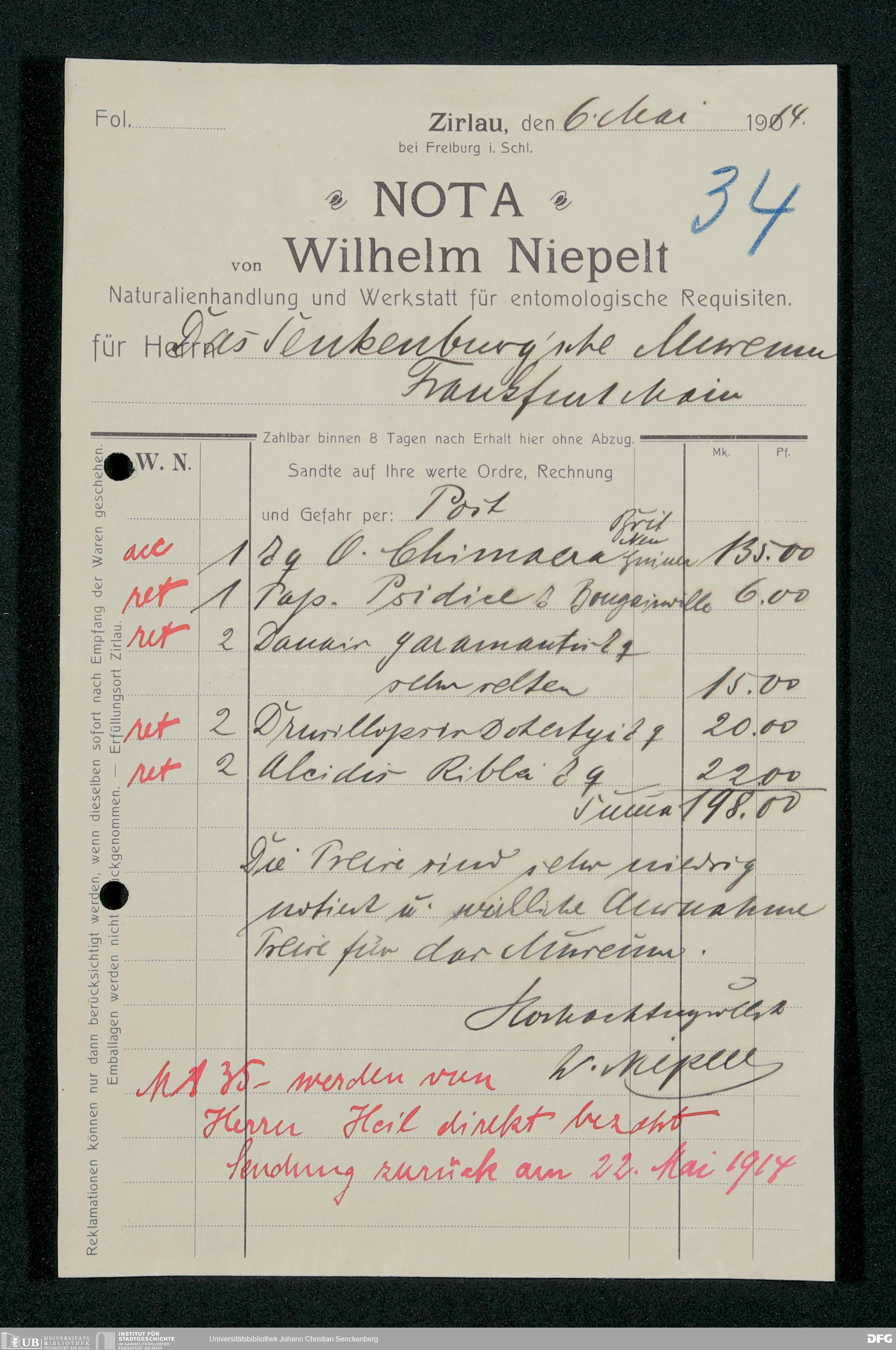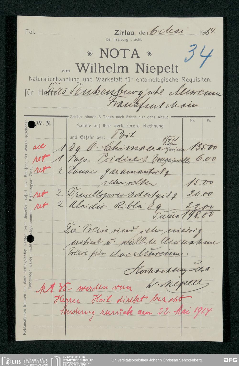 V176 Senckenberg Gesellschaft für Naturforschung, 163 - Ankauf und Tausch zoologischer Exponate, Bd. 4