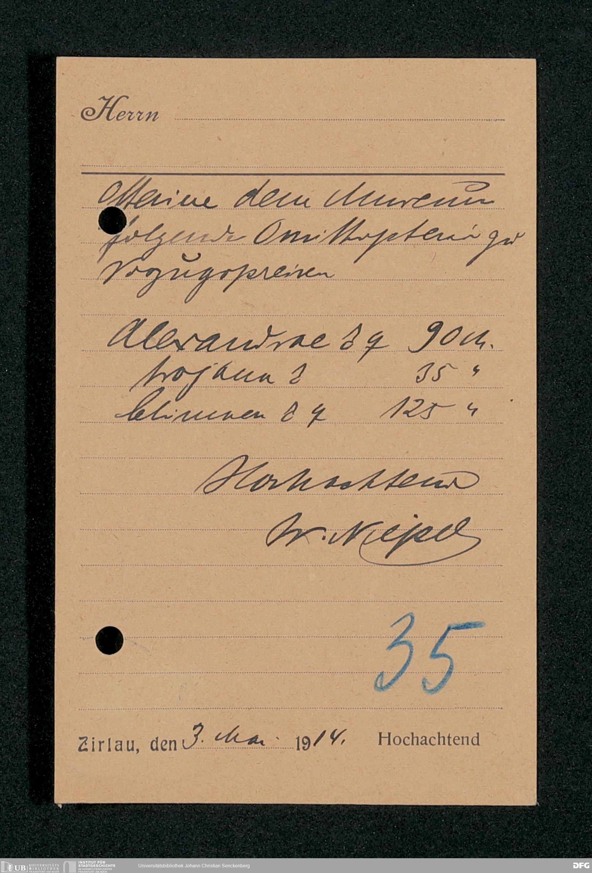 V176 Senckenberg Gesellschaft für Naturforschung, 163 - Ankauf und Tausch zoologischer Exponate, Bd. 4