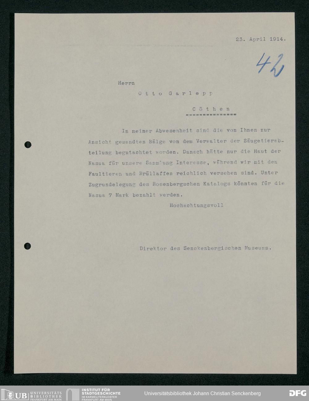 V176 Senckenberg Gesellschaft für Naturforschung, 163 - Ankauf und Tausch zoologischer Exponate, Bd. 4