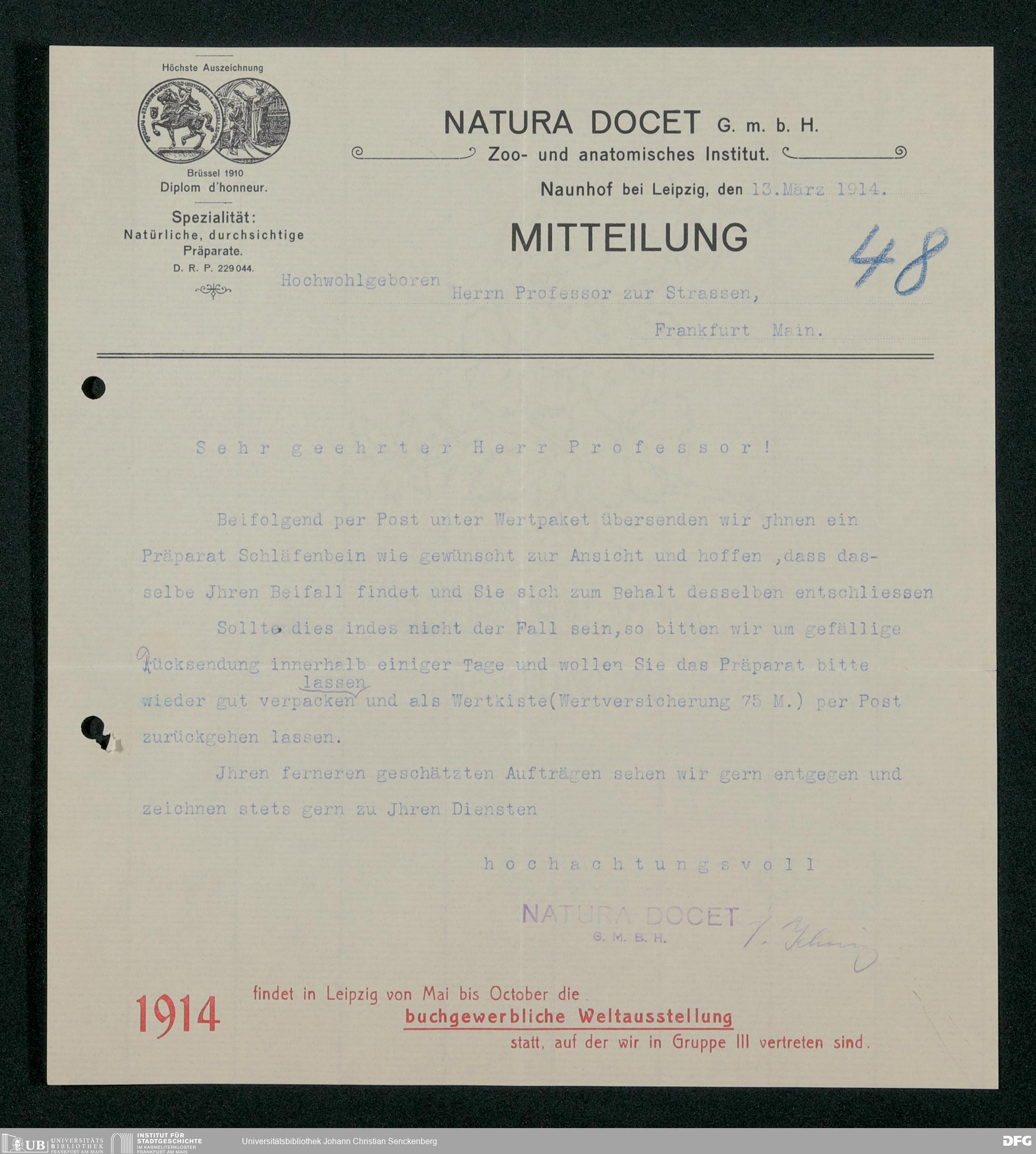 V176 Senckenberg Gesellschaft für Naturforschung, 163 - Ankauf und Tausch zoologischer Exponate, Bd. 4