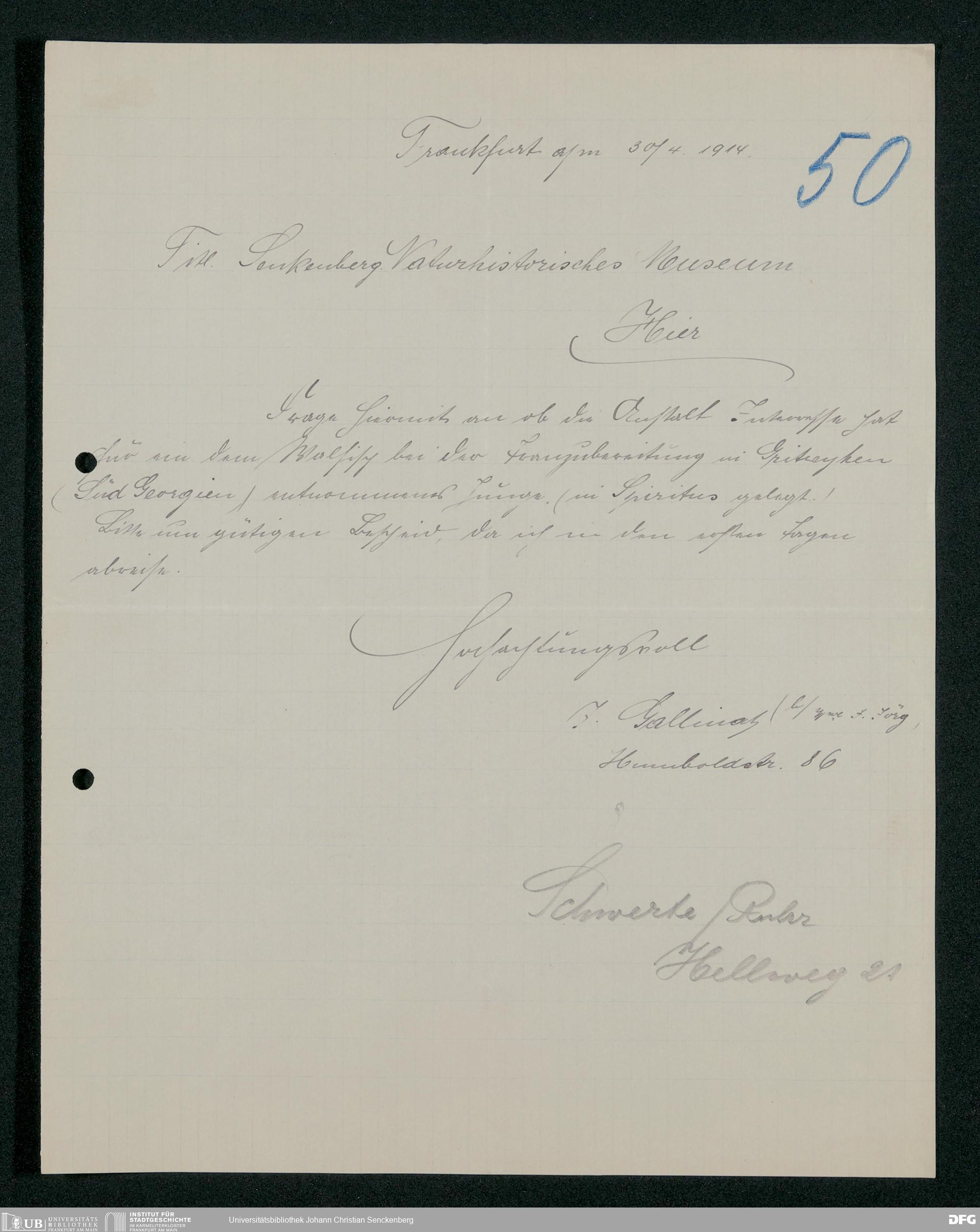 V176 Senckenberg Gesellschaft für Naturforschung, 163 - Ankauf und Tausch zoologischer Exponate, Bd. 4