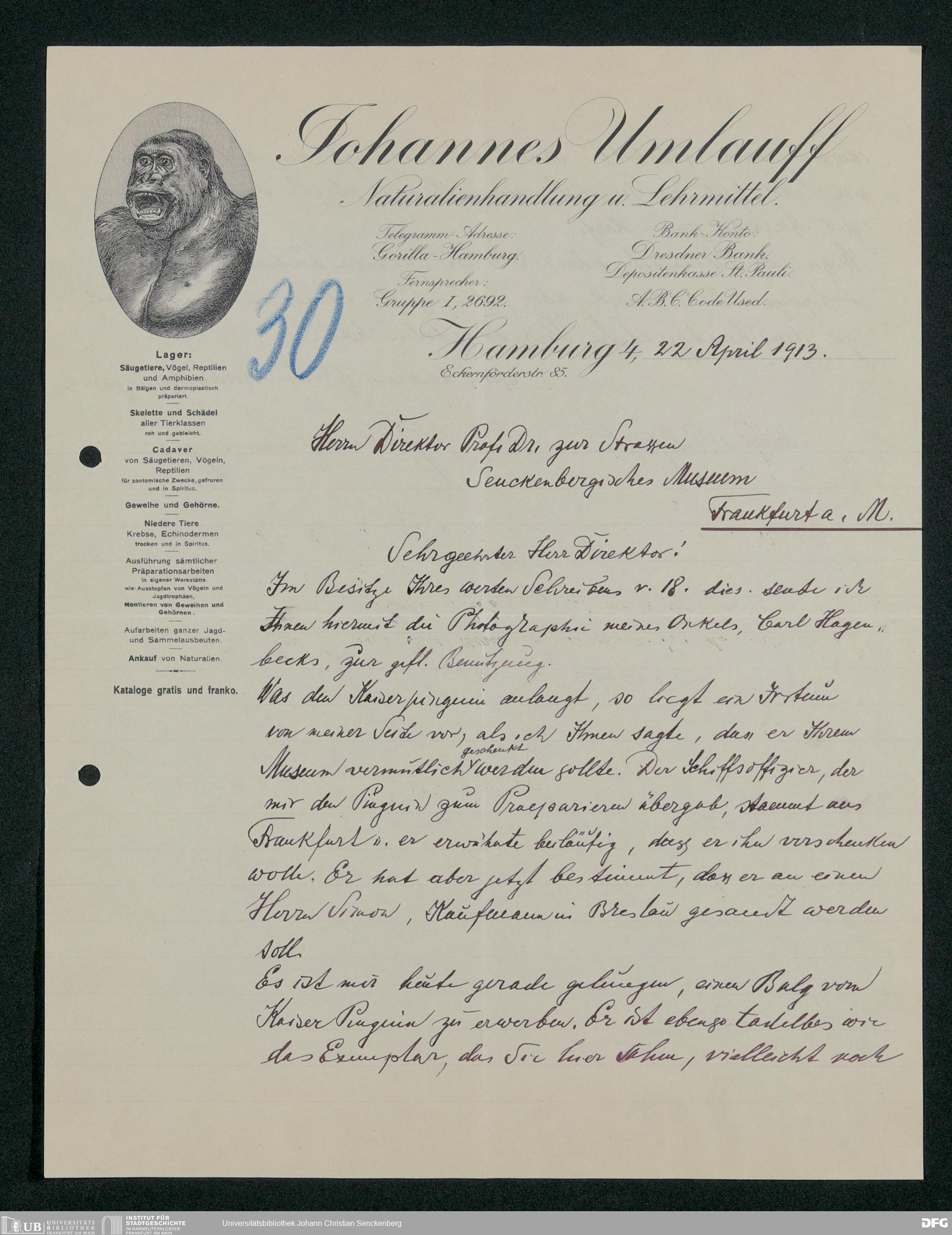 V176 Senckenberg Gesellschaft für Naturforschung, 167 - Ankauf zoologischer Exponate, Bd. 1