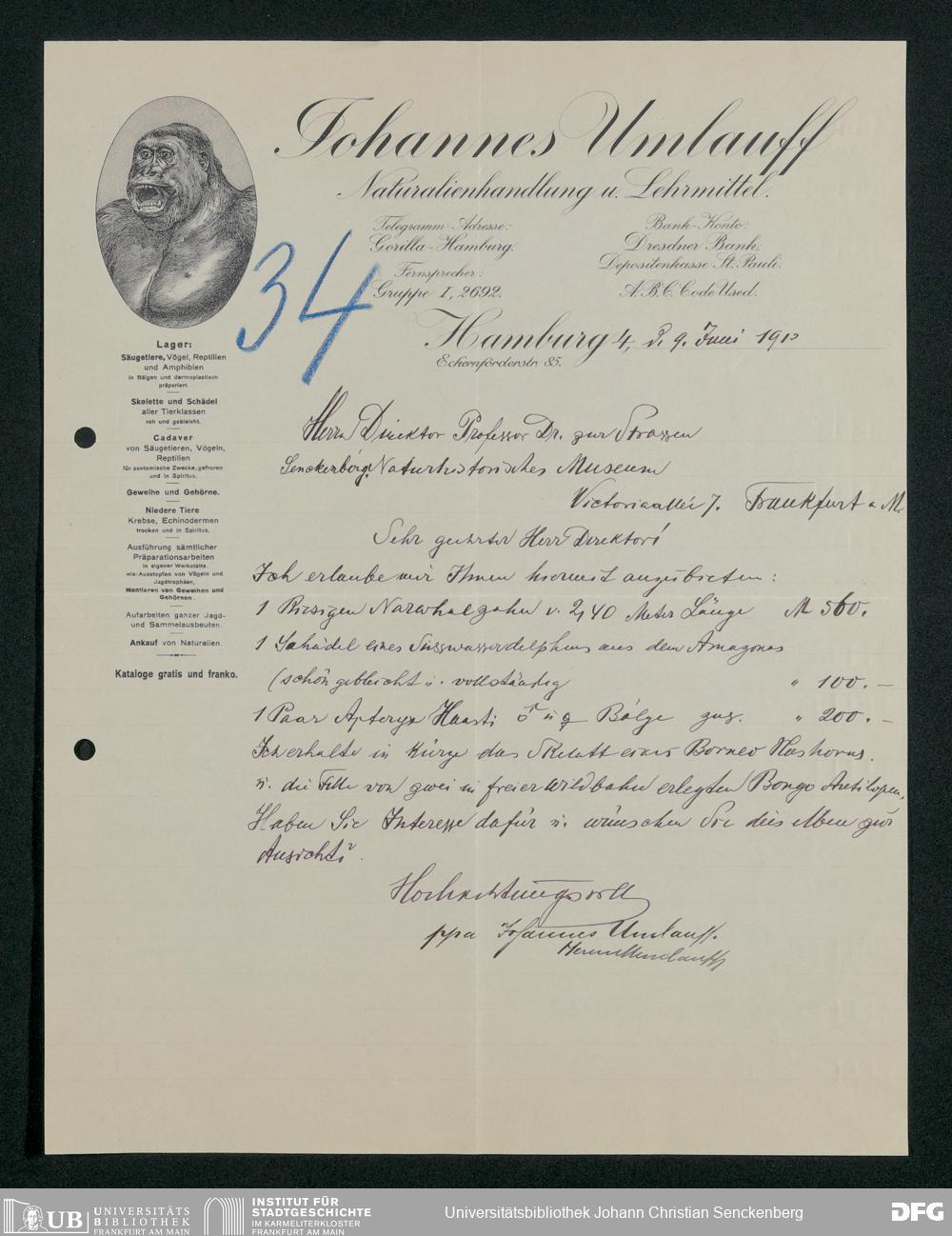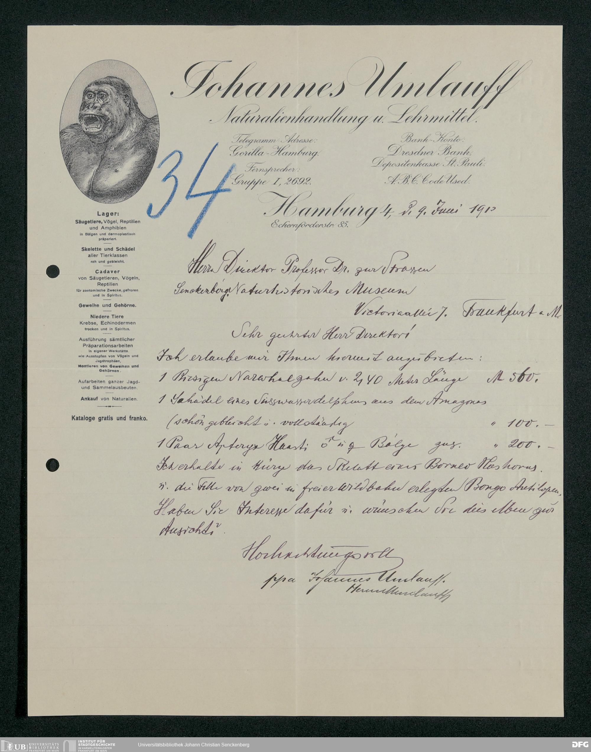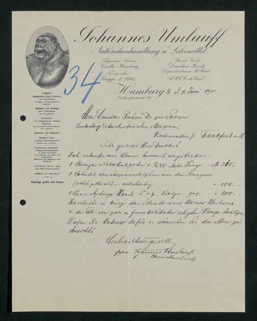 V176 Senckenberg Gesellschaft für Naturforschung, 167 - Ankauf zoologischer Exponate, Bd. 1