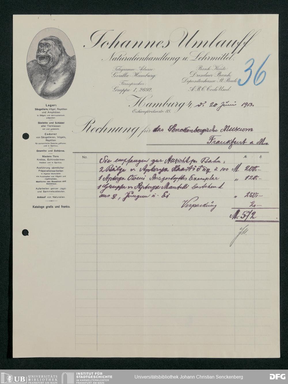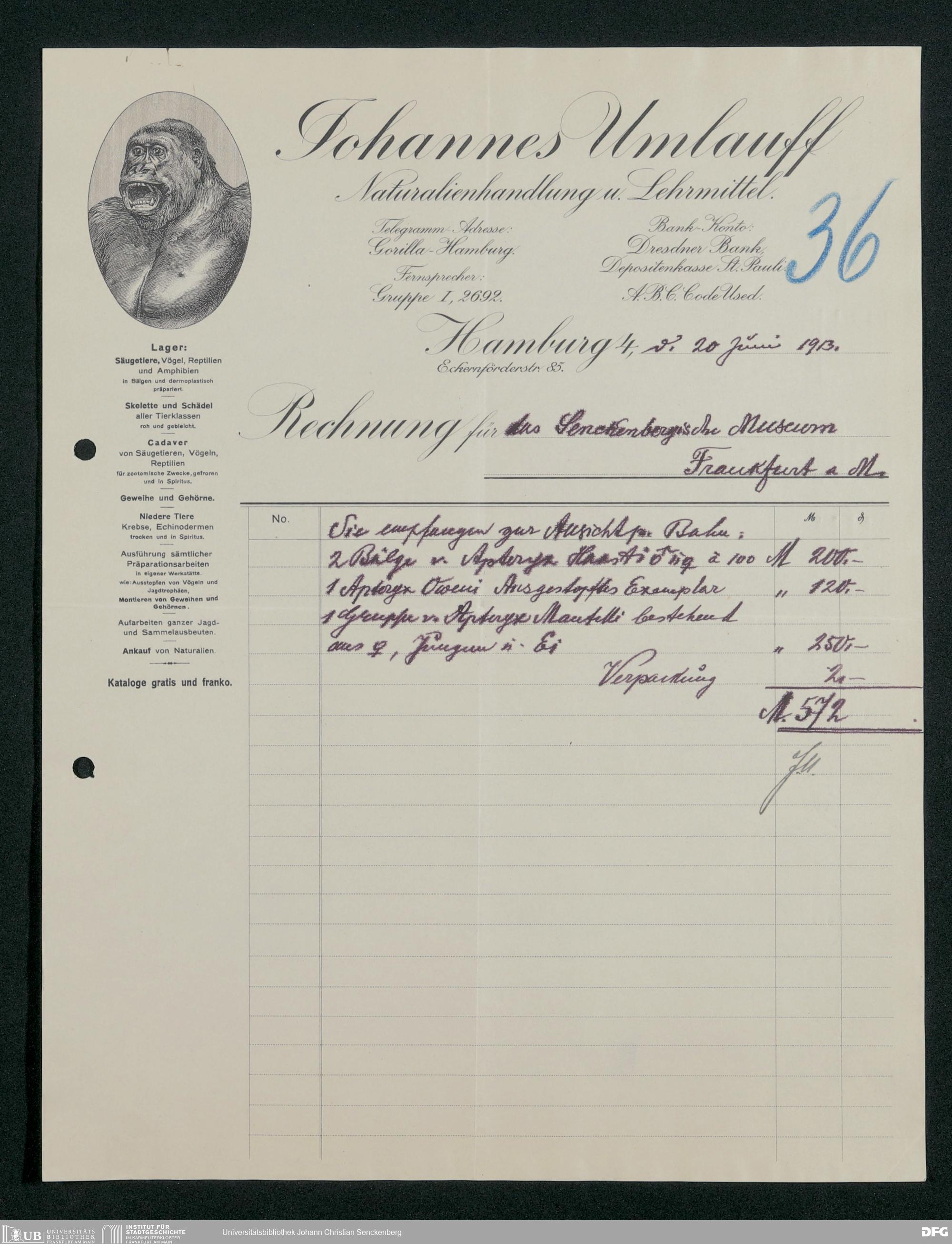 V176 Senckenberg Gesellschaft für Naturforschung, 167 - Ankauf zoologischer Exponate, Bd. 1