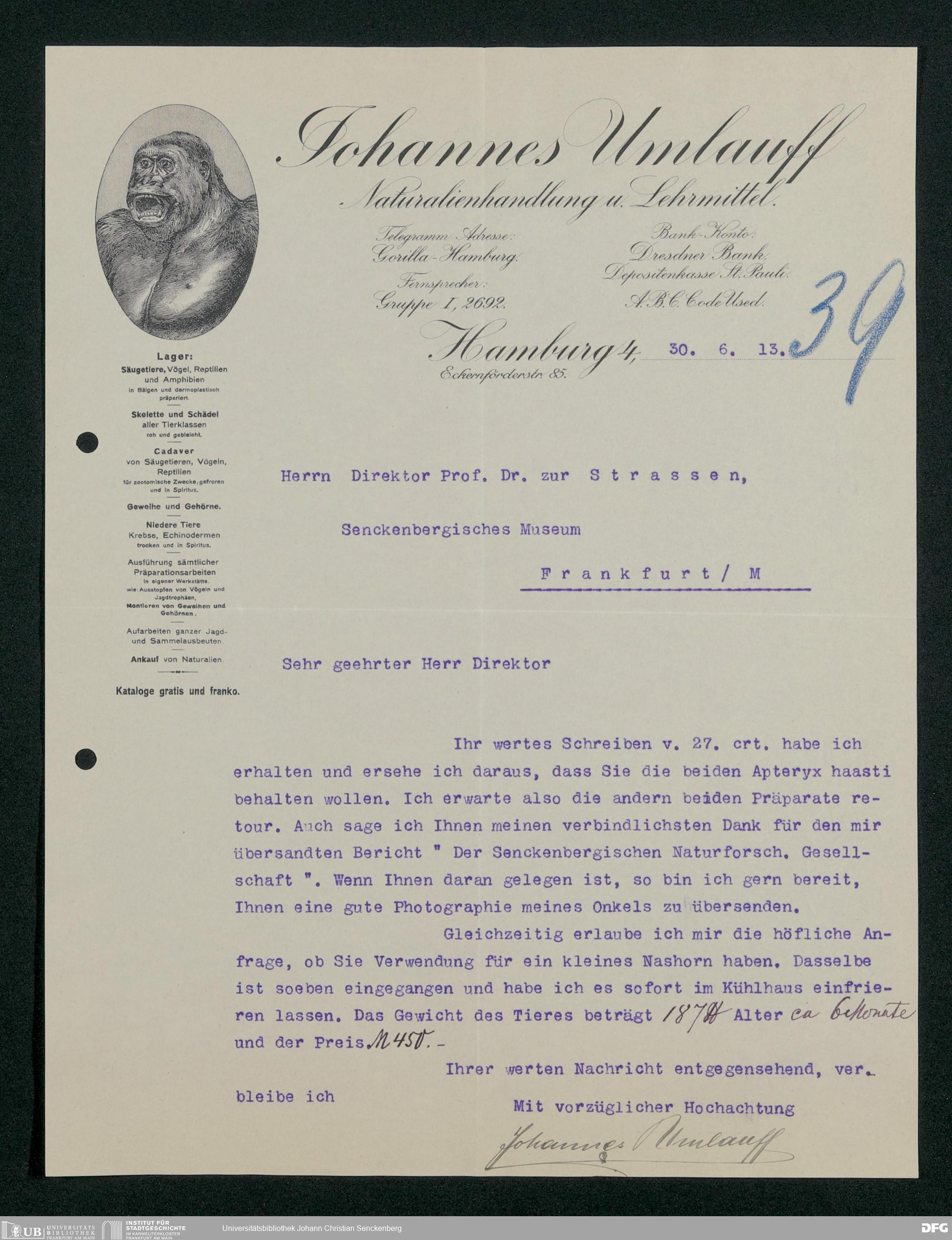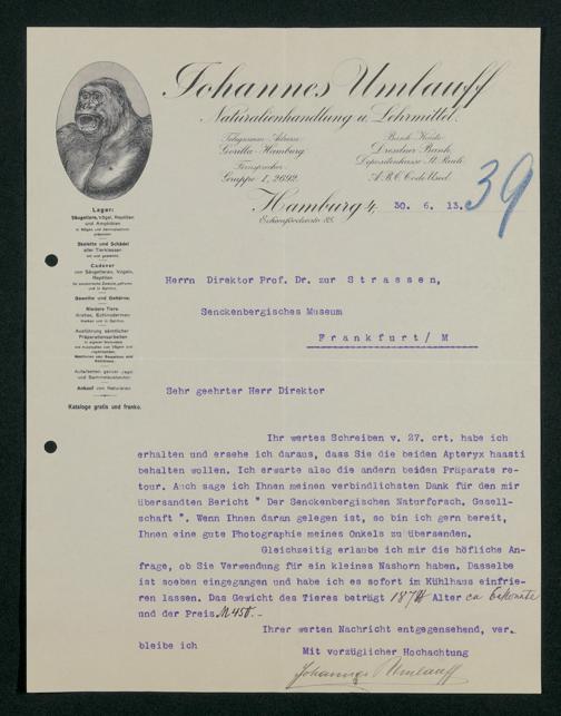 V176 Senckenberg Gesellschaft für Naturforschung, 167 - Ankauf zoologischer Exponate, Bd. 1