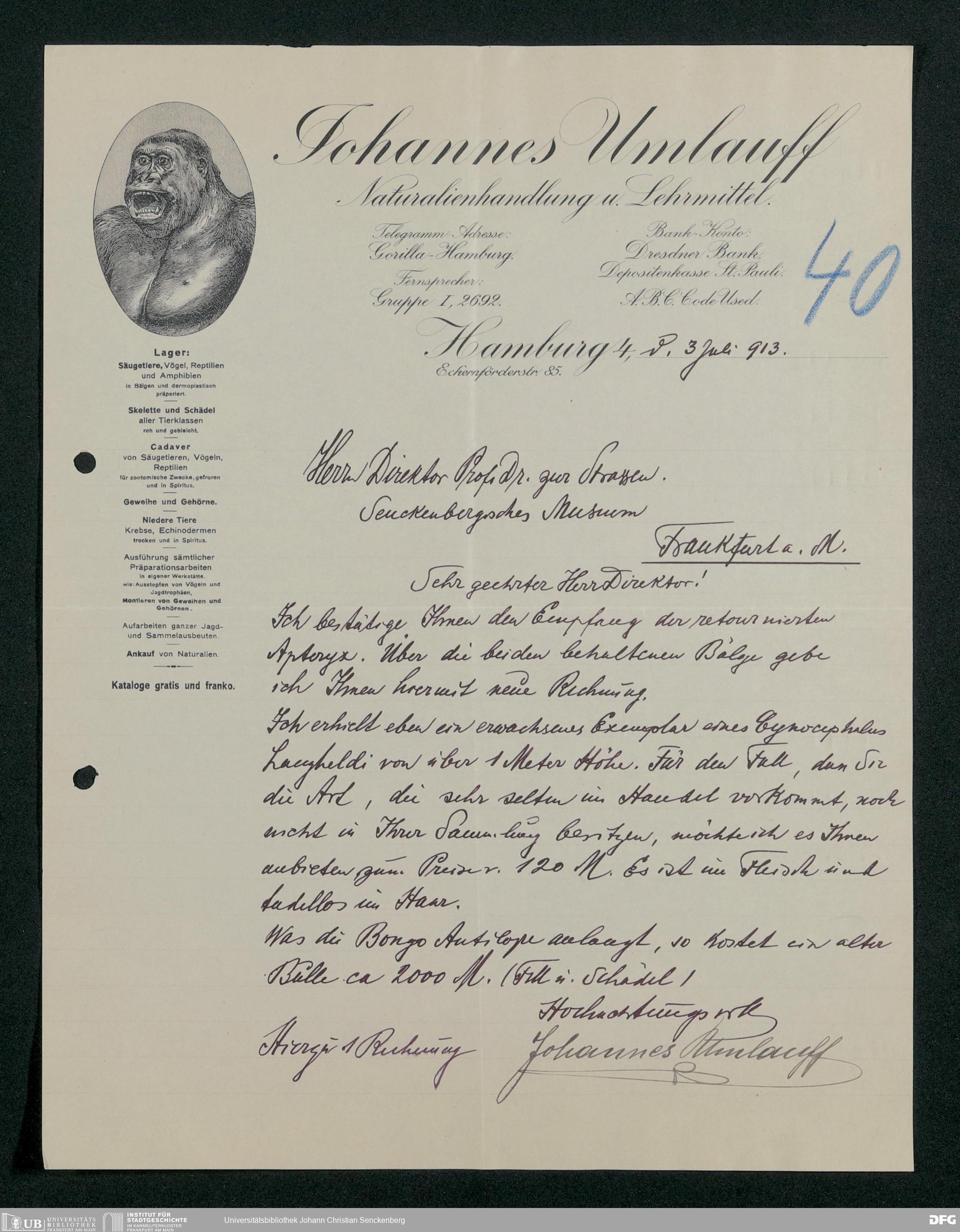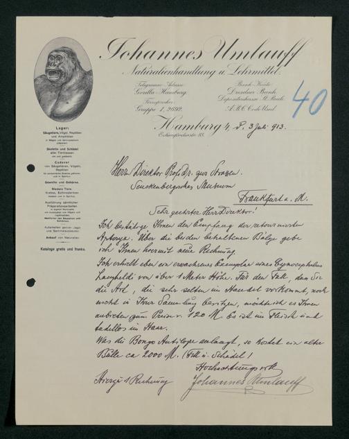 V176 Senckenberg Gesellschaft für Naturforschung, 167 - Ankauf zoologischer Exponate, Bd. 1
