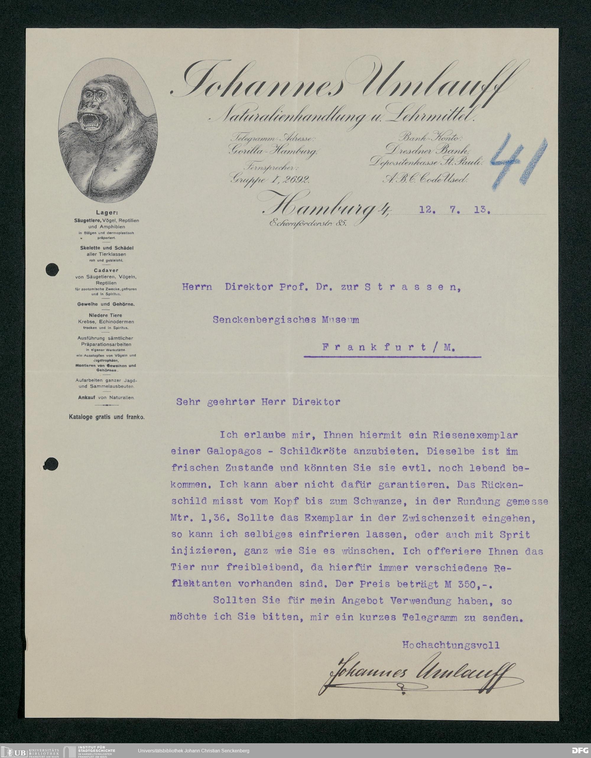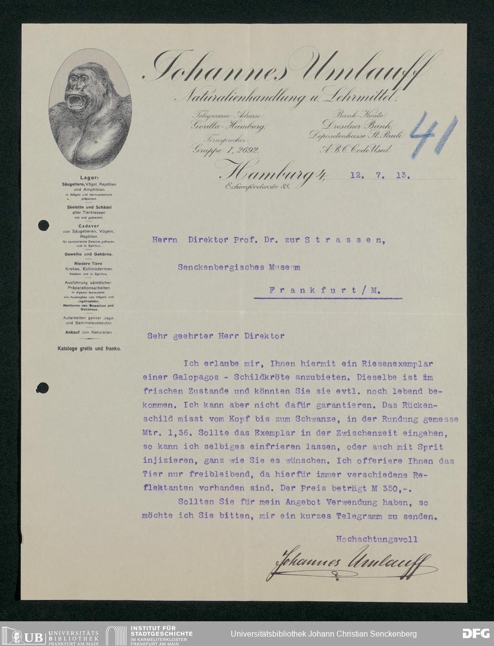 V176 Senckenberg Gesellschaft für Naturforschung, 167 - Ankauf zoologischer Exponate, Bd. 1