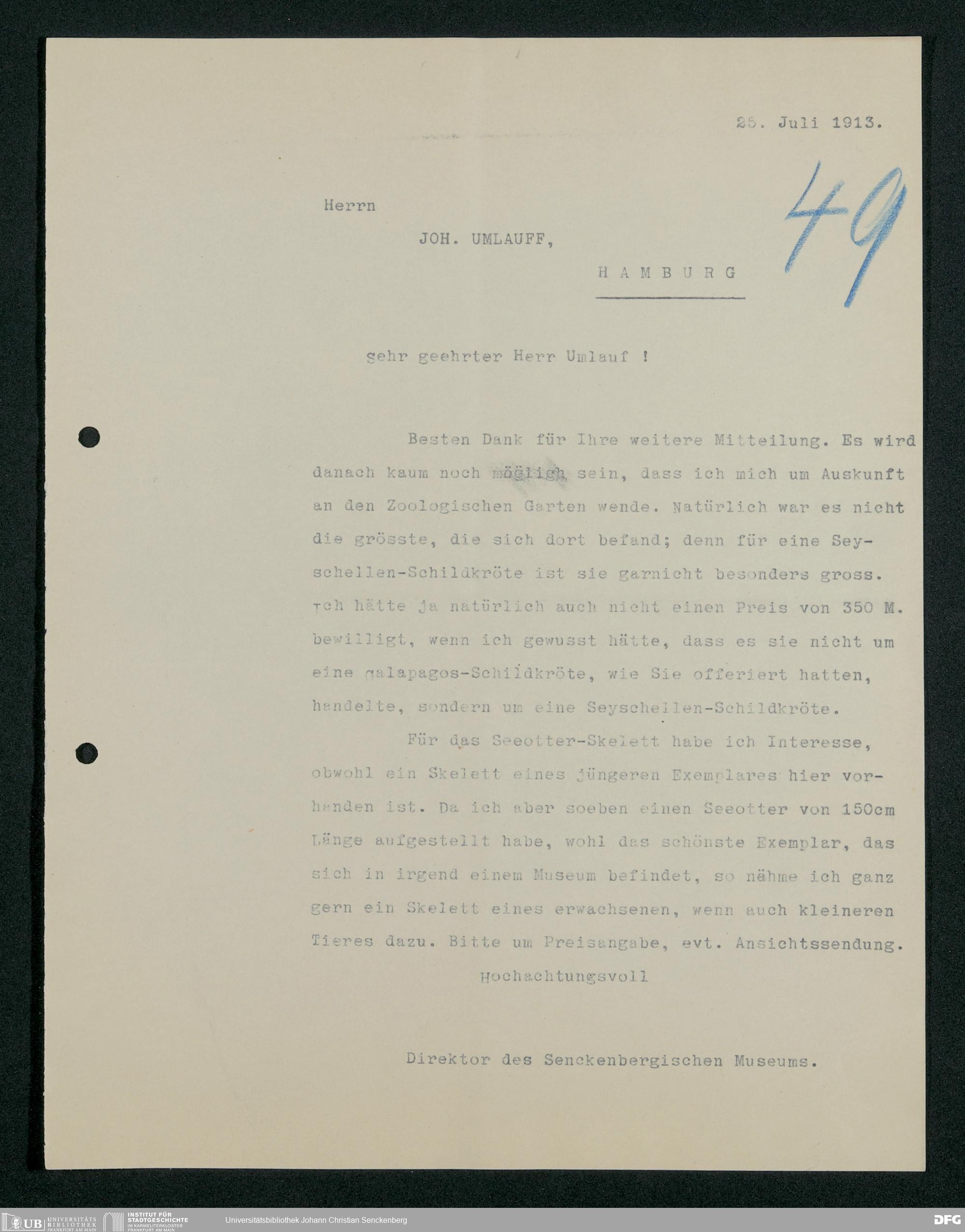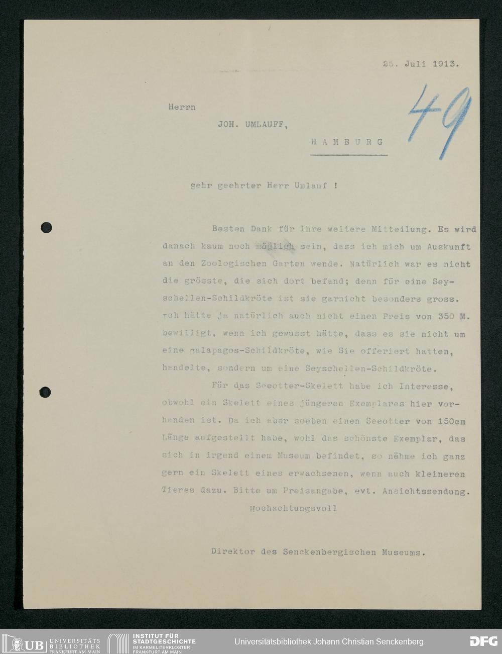 V176 Senckenberg Gesellschaft für Naturforschung, 167 - Ankauf zoologischer Exponate, Bd. 1