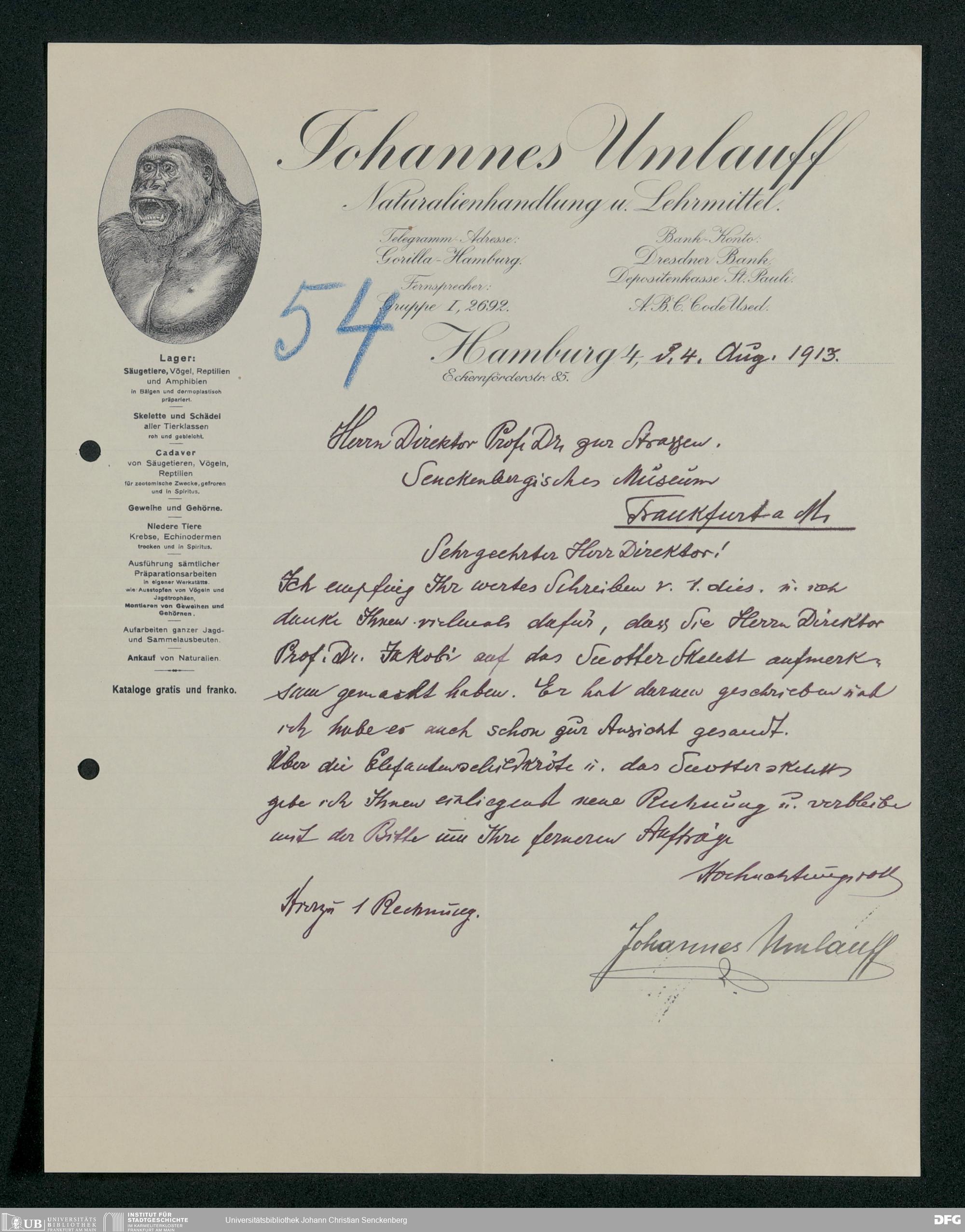 V176 Senckenberg Gesellschaft für Naturforschung, 167 - Ankauf zoologischer Exponate, Bd. 1