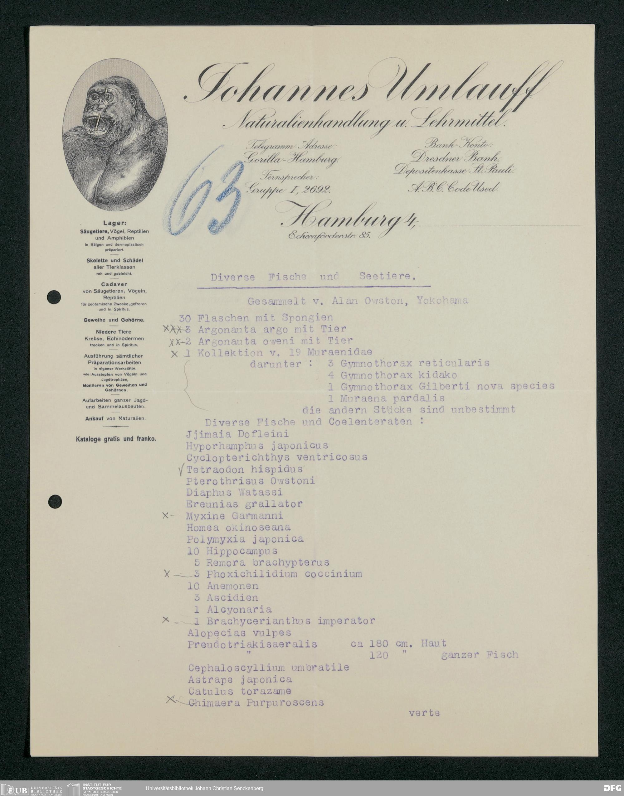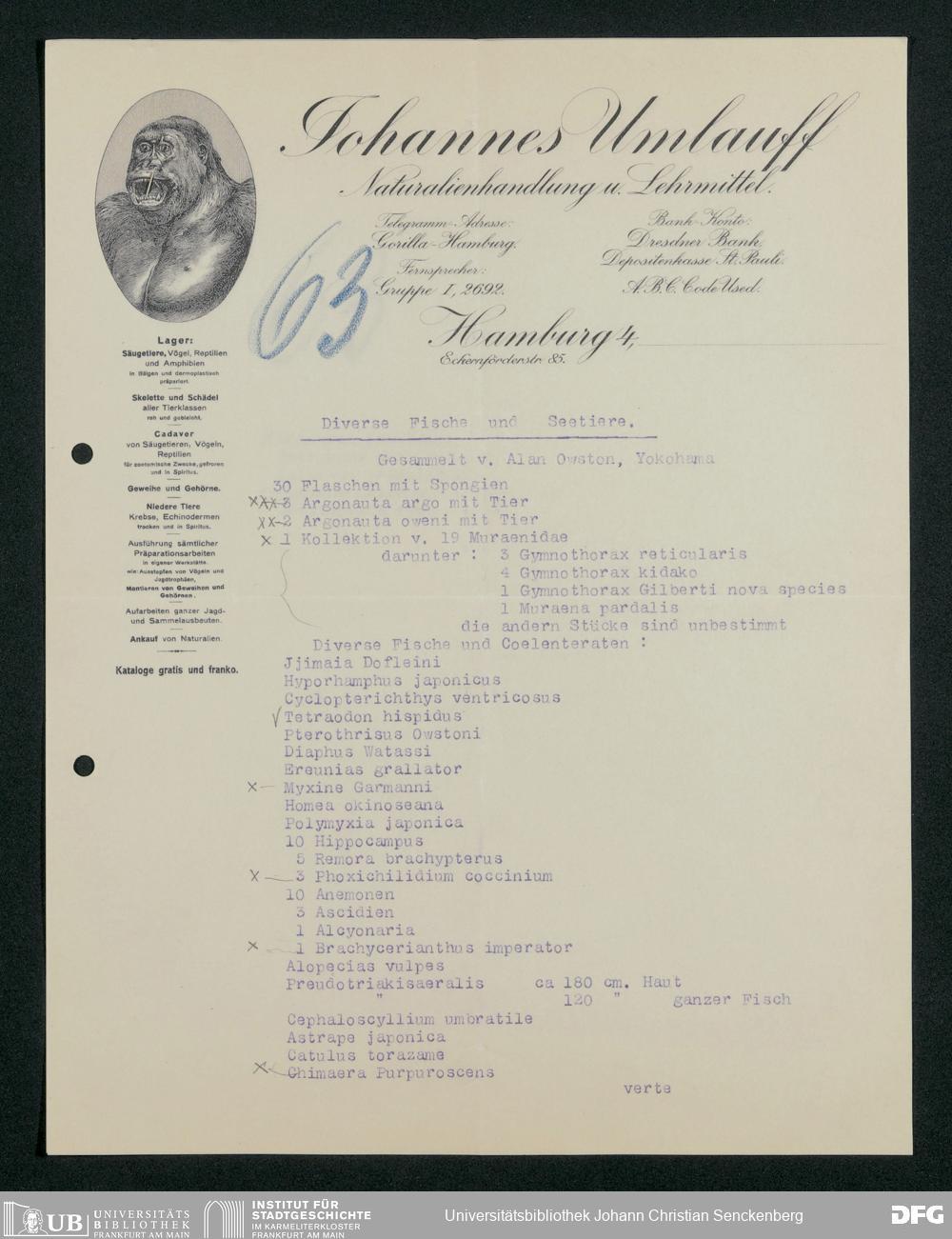 V176 Senckenberg Gesellschaft für Naturforschung, 167 - Ankauf zoologischer Exponate, Bd. 1