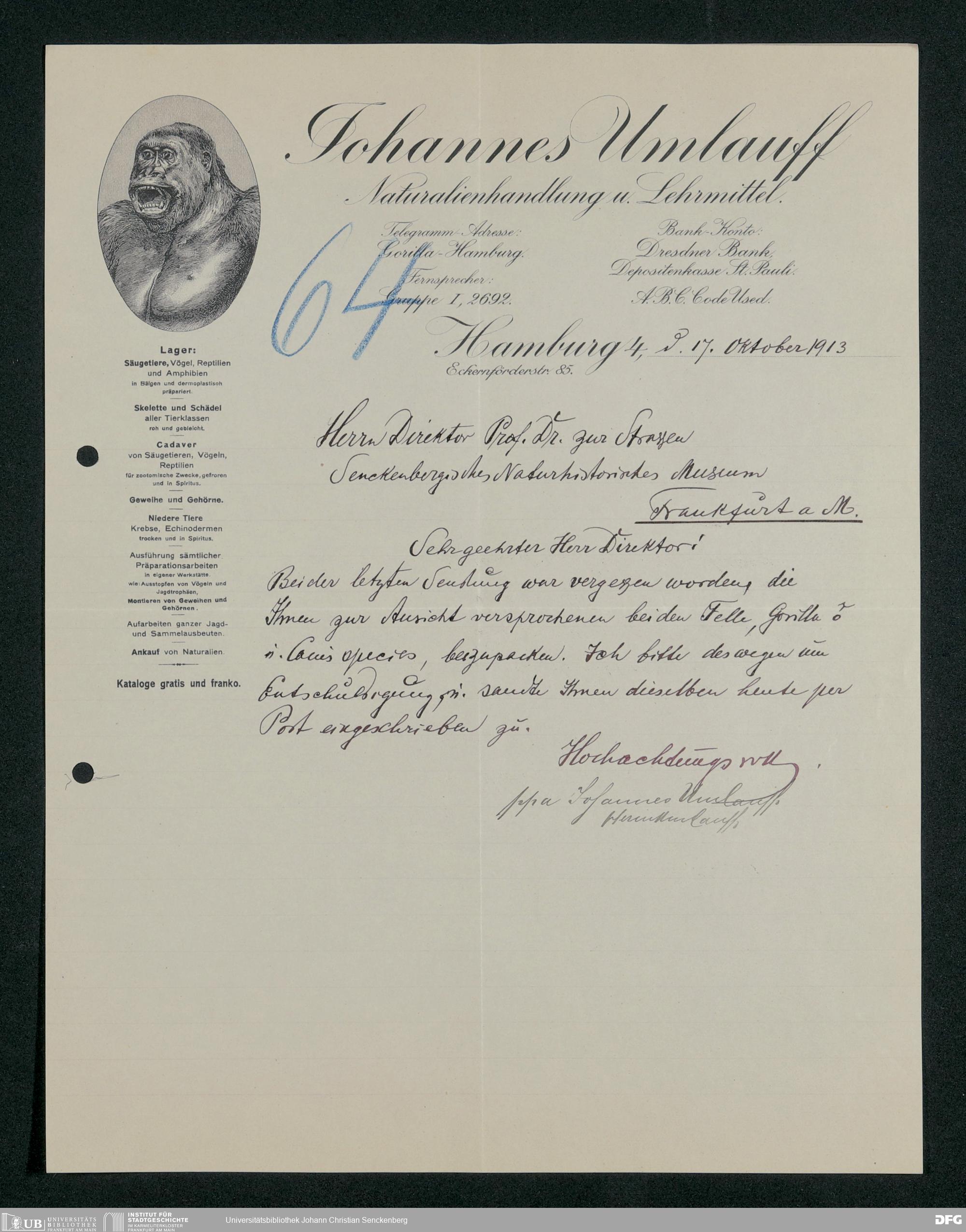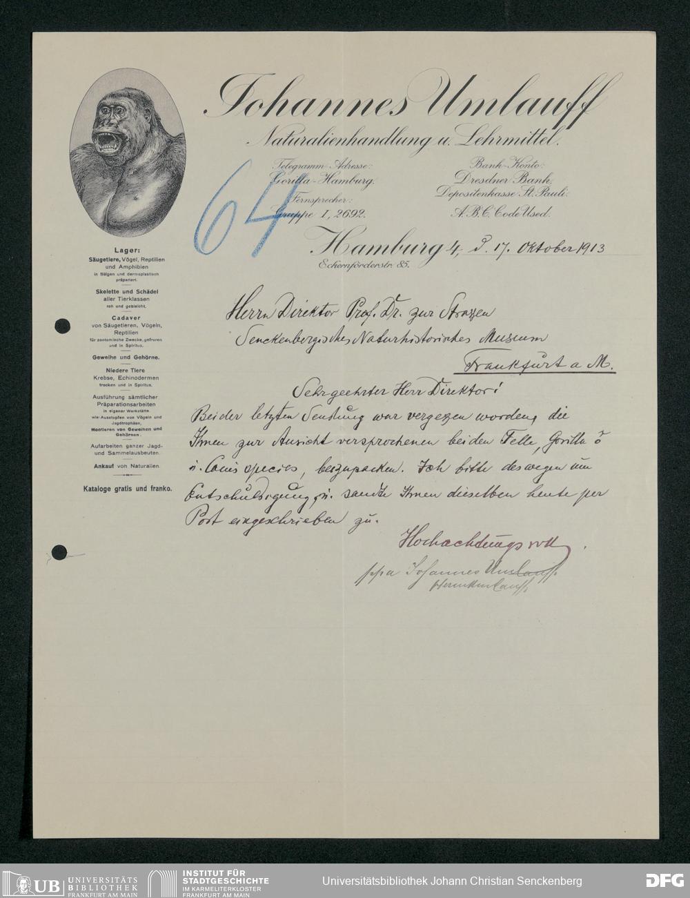 V176 Senckenberg Gesellschaft für Naturforschung, 167 - Ankauf zoologischer Exponate, Bd. 1