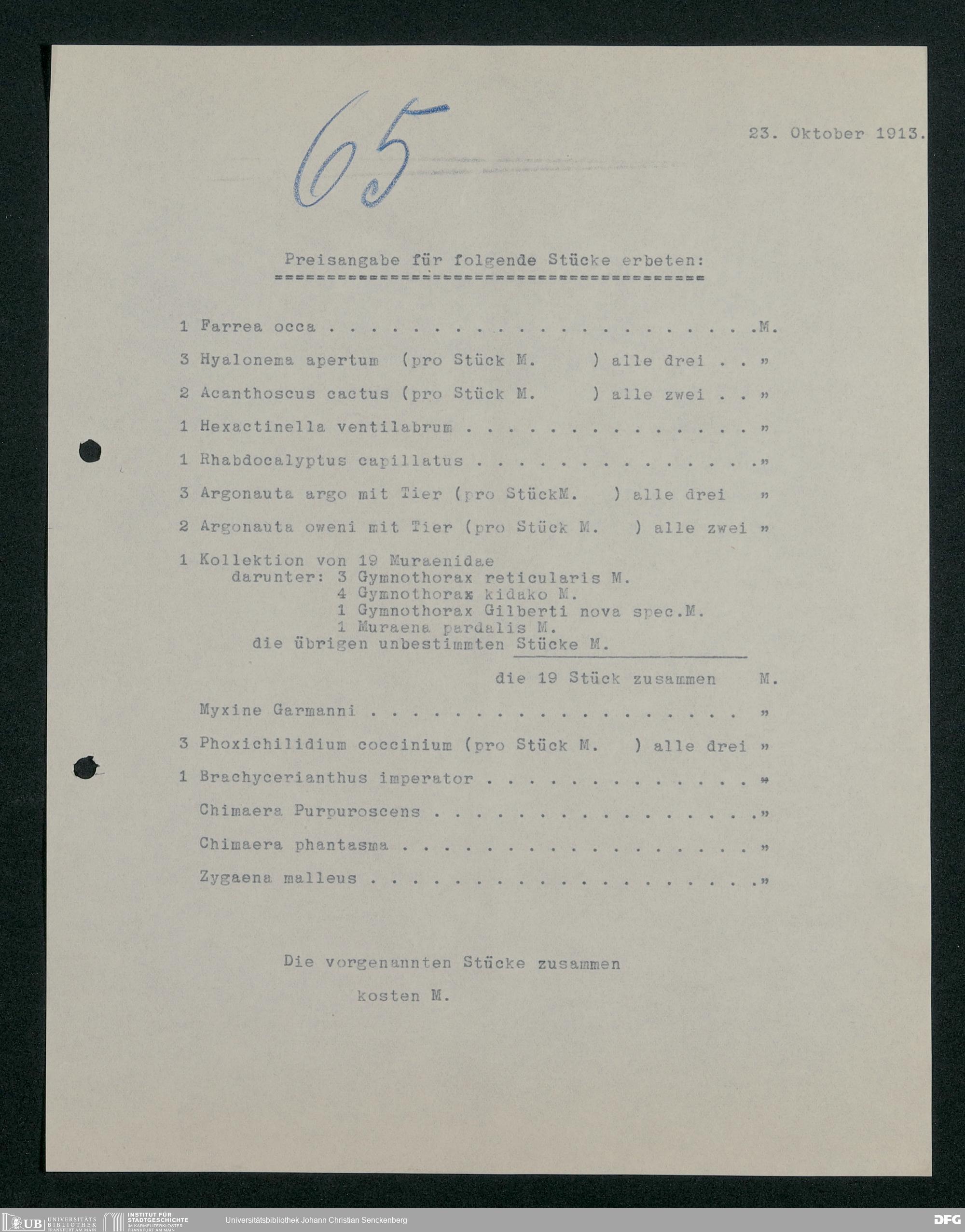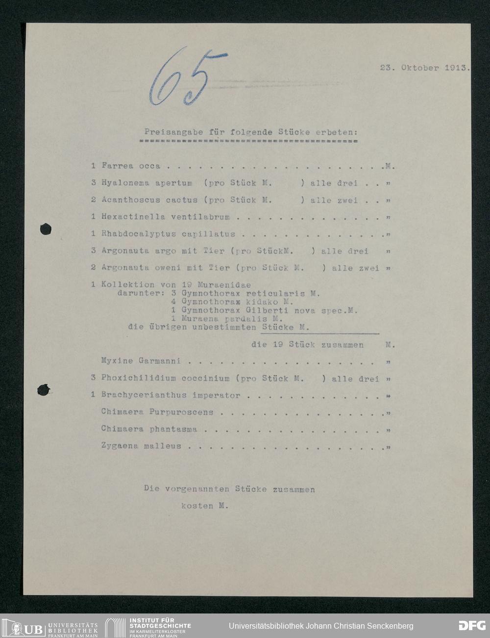 V176 Senckenberg Gesellschaft für Naturforschung, 167 - Ankauf zoologischer Exponate, Bd. 1