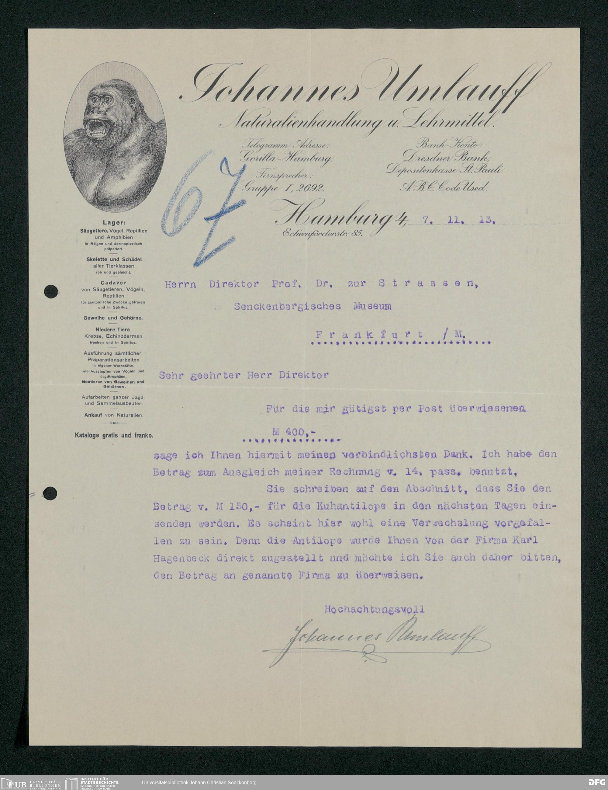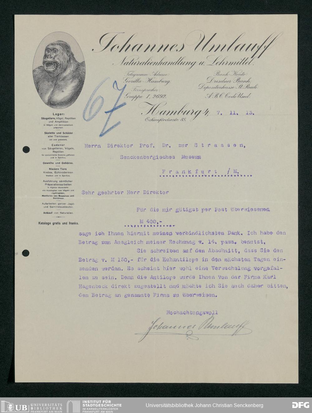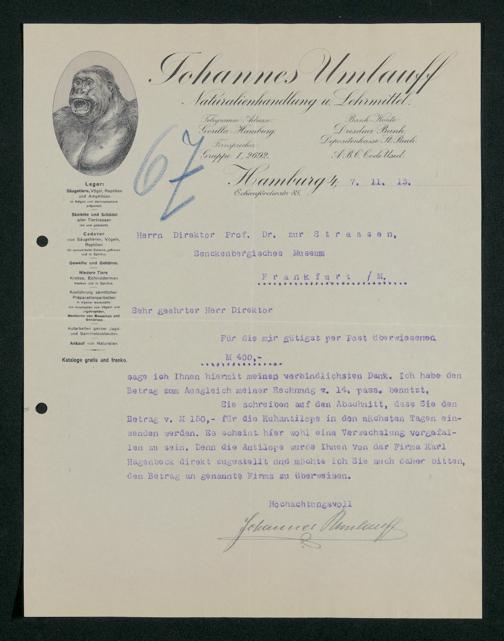 V176 Senckenberg Gesellschaft für Naturforschung, 167 - Ankauf zoologischer Exponate, Bd. 1