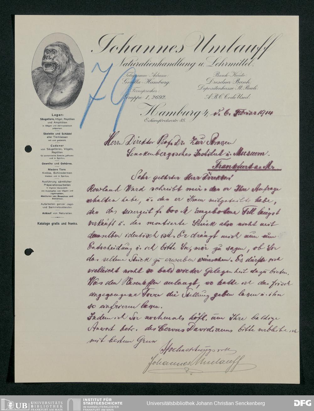 V176 Senckenberg Gesellschaft für Naturforschung, 167 - Ankauf zoologischer Exponate, Bd. 1